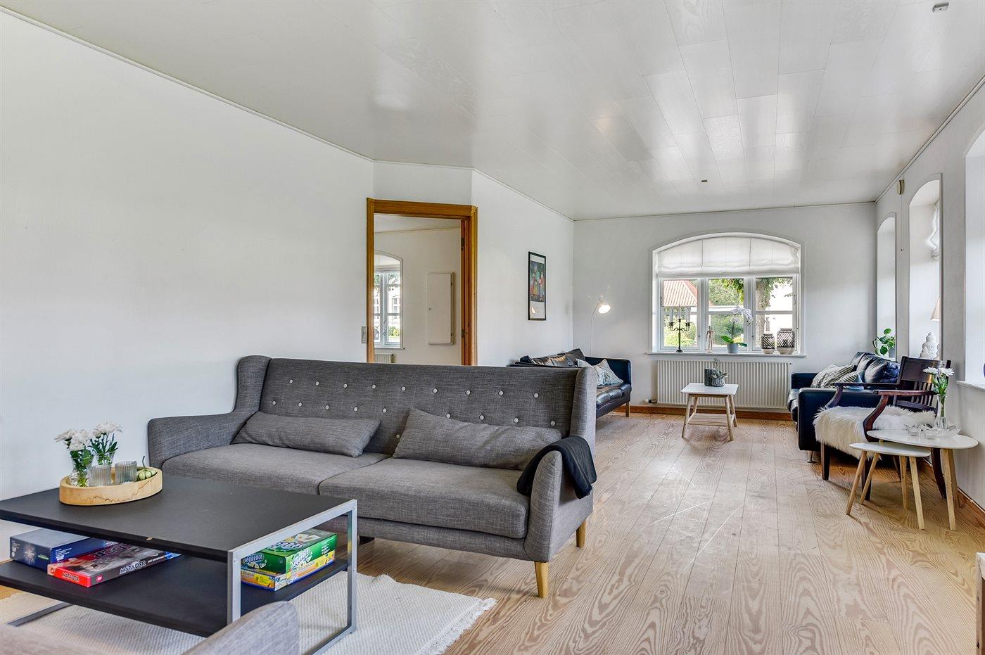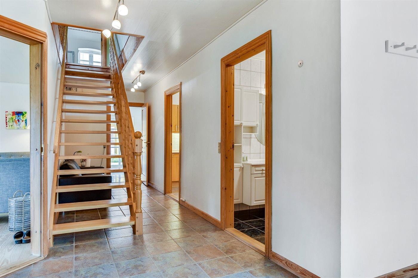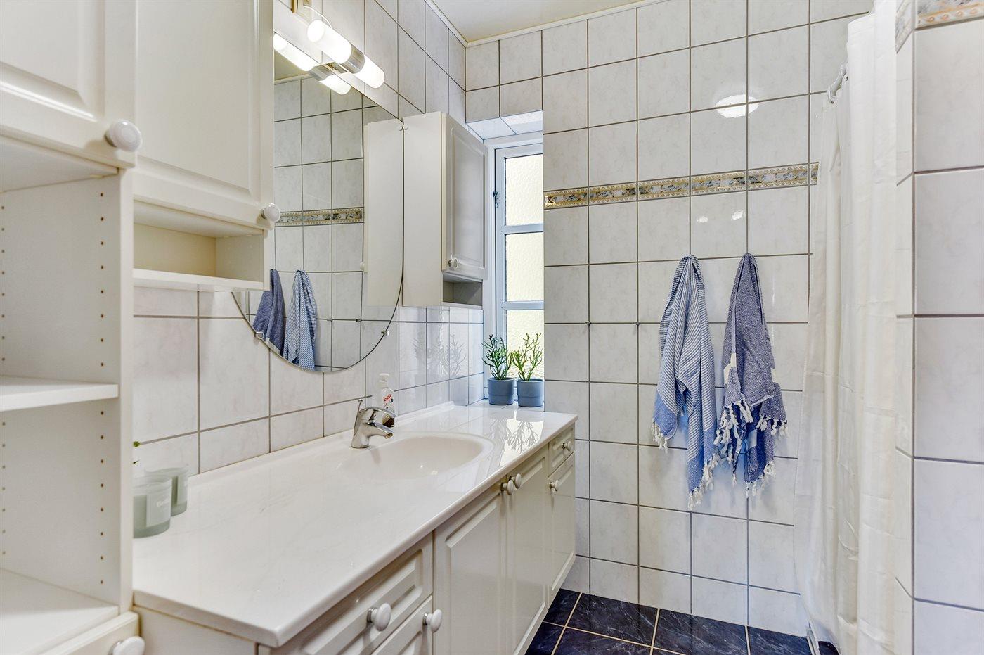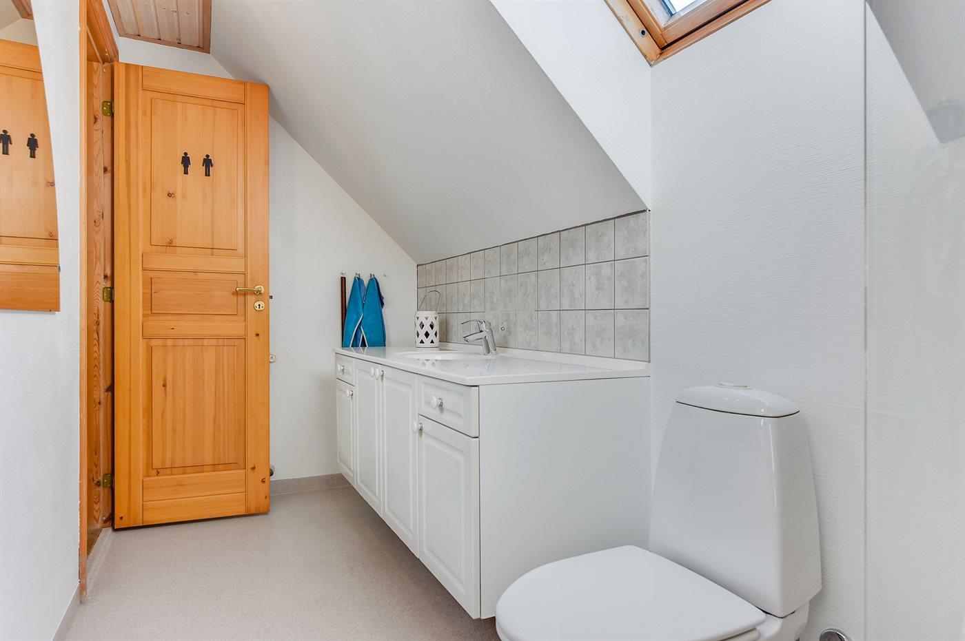 Der er 2 badeværelser med bruseniche og 2 toiletter. Der er gulvvarme på 1 badeværelse.