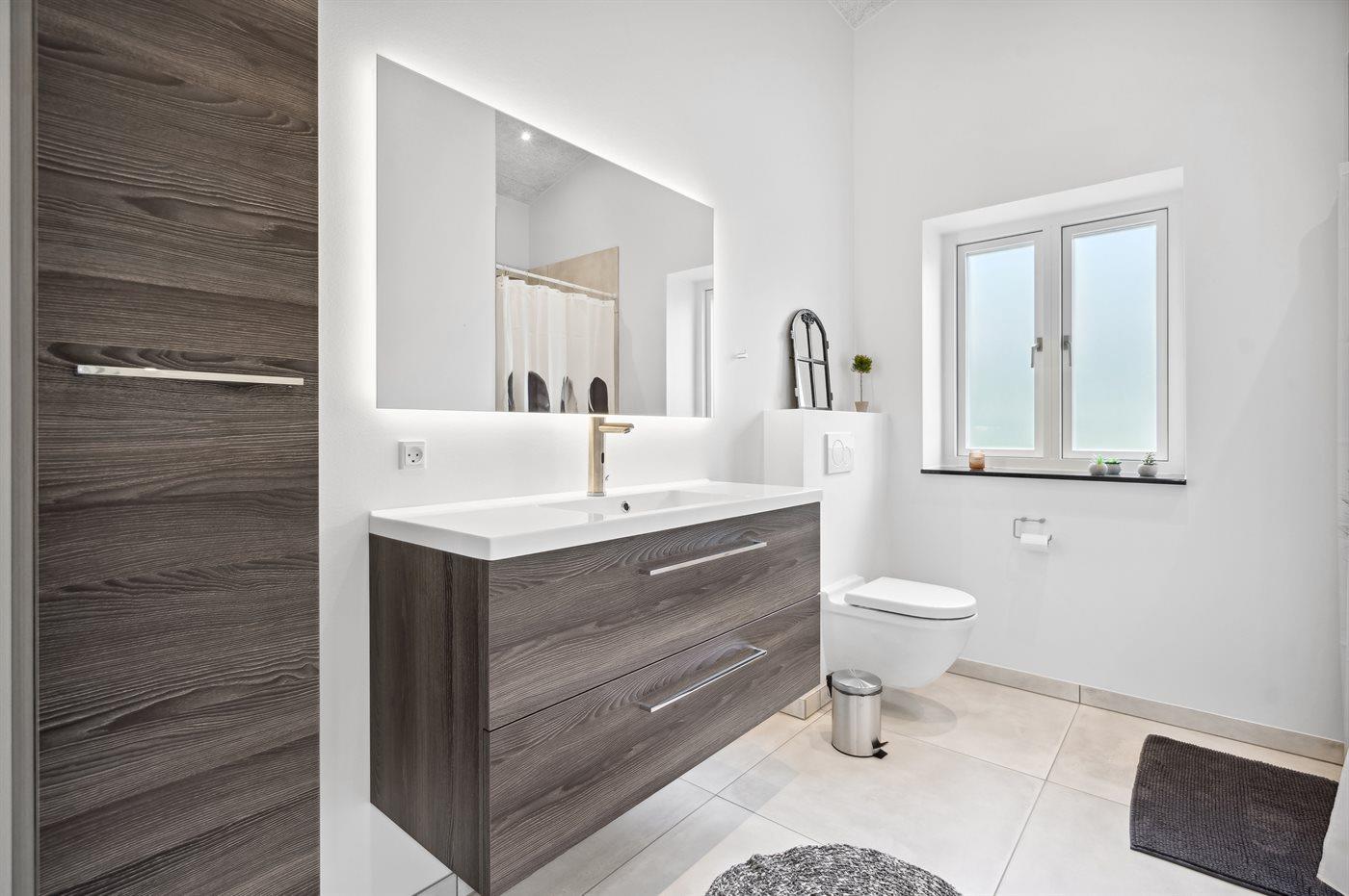 Der er 2 badeværelser med bruseniche og 2 toiletter. Der er gulvvarme på 2 badeværelser.. Badekar.
