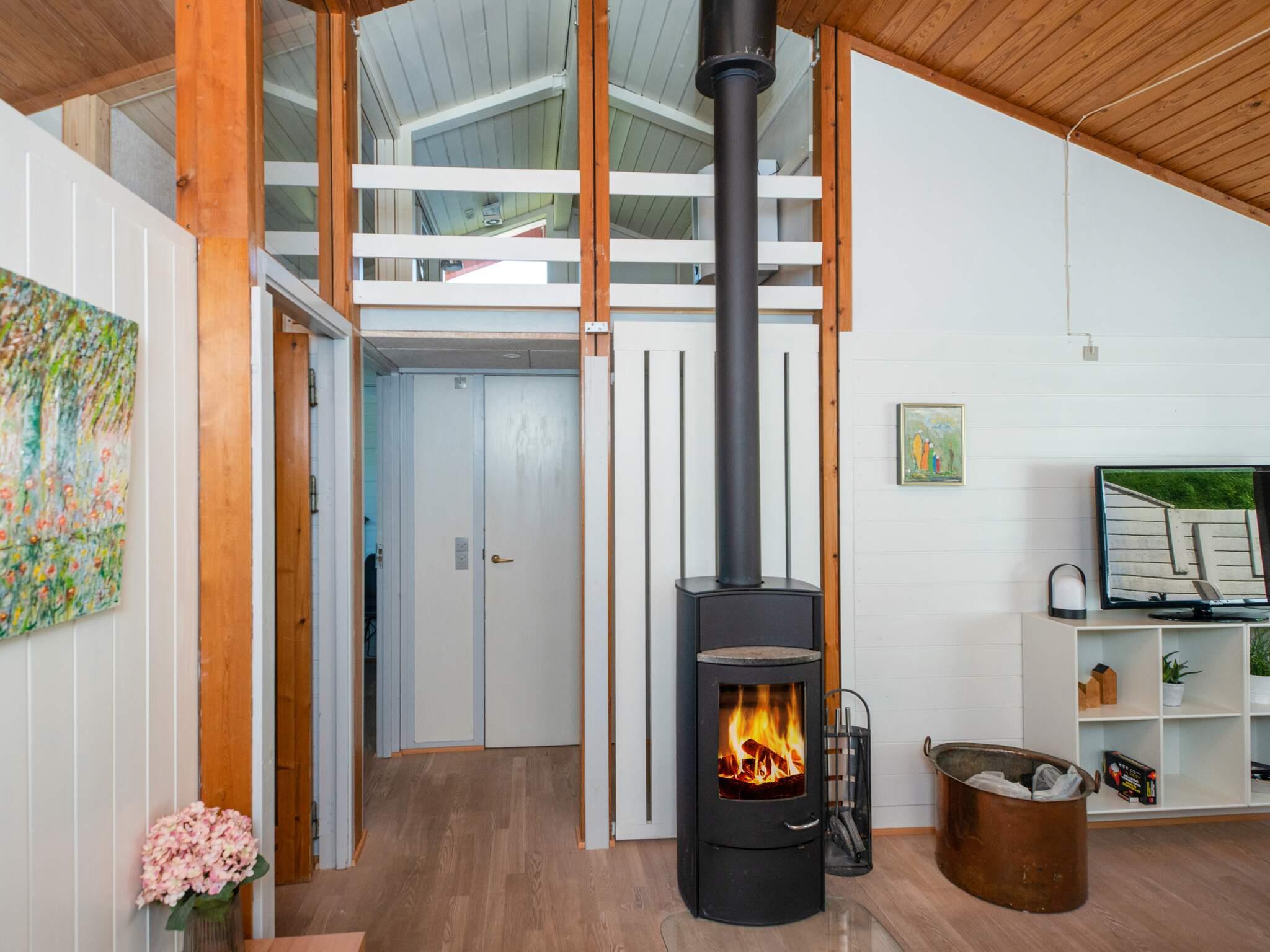 1 Opholdsstue: Brændeovn, radio, tv, høj stol