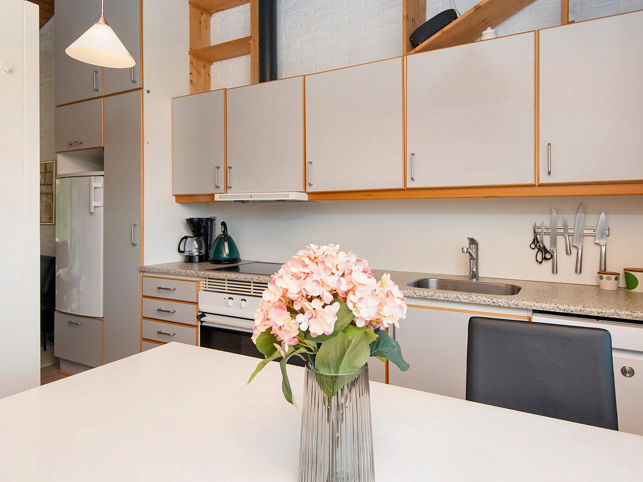 Hjemmet har to komfortable soveværelser med dobbeltsenge, plus en ekstra seng på hemsen under det skrå loft, hvilket gør det ideelt for familier eller små grupper. Opholds- og spiseområdet i åbent plan er lyst og indbydende, udstyret med gratis trådløs internetadgang og kabel-tv til underholdning. Smagfuld indretning og moderne bekvemmeligheder skaber et hyggeligt og bekvemt miljø for en afslappende ferie.