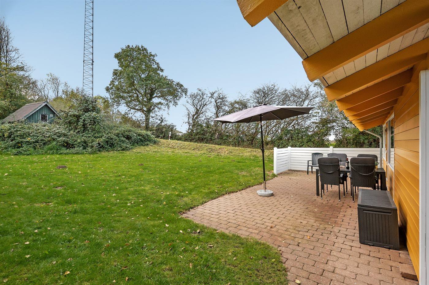 Ferieboligen er beliggende på en 100 m² stor naturgrund. Der er 500 m til havet. Nærmeste forretning er beliggende i en afstand af 3000 m. Til ferieboligen hører 30 m² terrasseareal. Desuden er der 6 m² overdækket terrasse. Parkering ved ferieboligen.