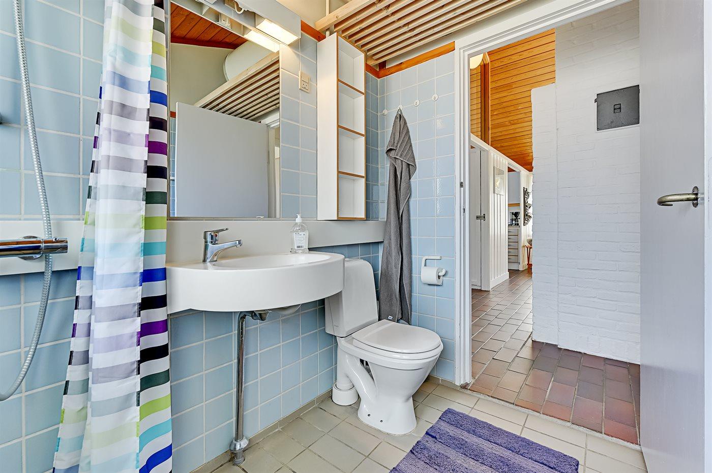 Der er 1 badeværelse med bruser og 1 toilet.. Der er gulvvarme på 1 badeværelse.