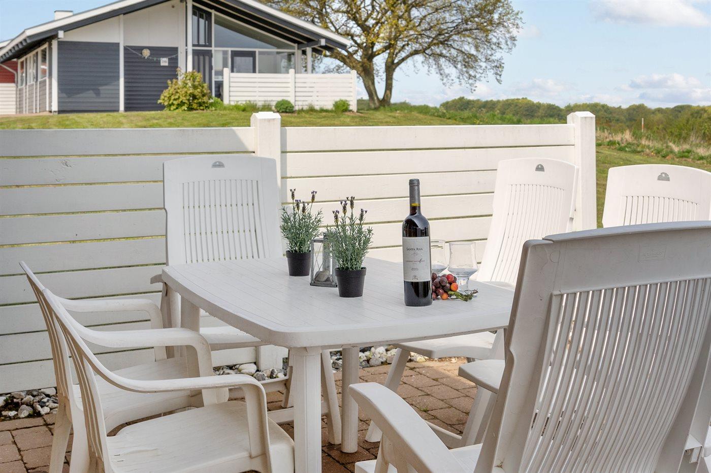 Ferieboligen er beliggende på en 300 m² stor naturgrund. Der er 200 m til havet. Nærmeste forretning er beliggende i en afstand af 1000 m. Til ferieboligen hører 65 m² terrasseareal. Desuden er der 12 m² overdækket terrasse. Sandkasse. Grill til rådighed. Parkering ved ferieboligen.