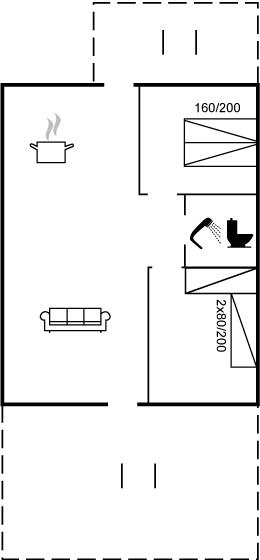Der er i alt 2 soveværelser. Sovepladserne fordeler sig på: 2 sovepladser i dobbeltseng. 3 sovepladser i køjesenge.