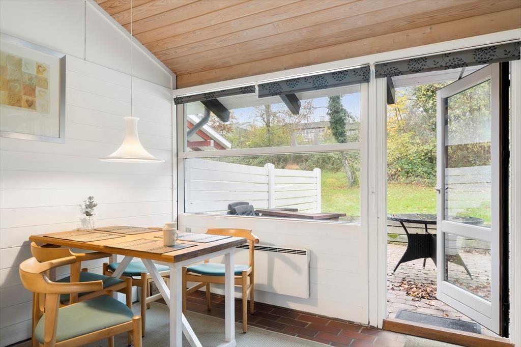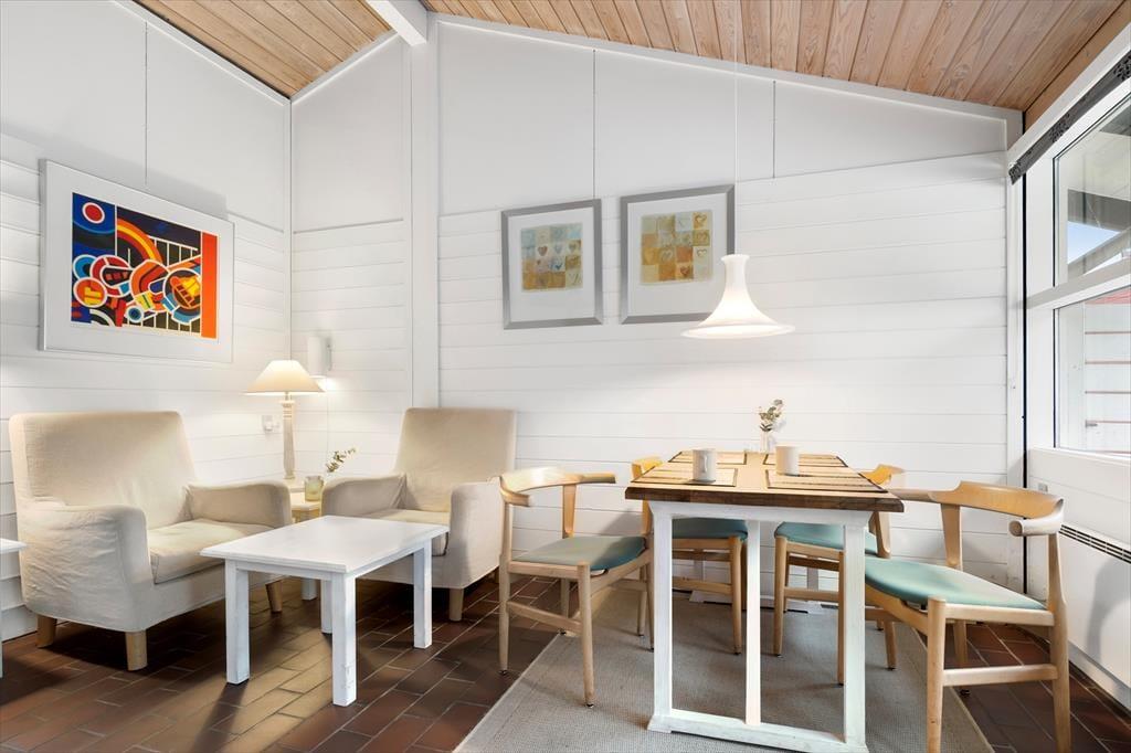 Når du træder ind i ferielejligheden, mødes du af en rummelig og lys atmosfære, der indbyder til hyggeligt samvær. Den fleksible indretning giver dig mulighed for at klappe sengen op, så du får mere plads i stuen, hvilket skaber en uforstyrret stemning. Indretningen kombinerer komfort og funktionalitet, så der er plads til både afslapning og leg. Store vinduer slipper lys ind og giver dig et kik til den bagerst terrasse og det grønne område, hvilket skaber en særlig feriestemning. På for terrassen kan du nyde din morgenkaffe i fred, mens du ser solen stige op over vandet.