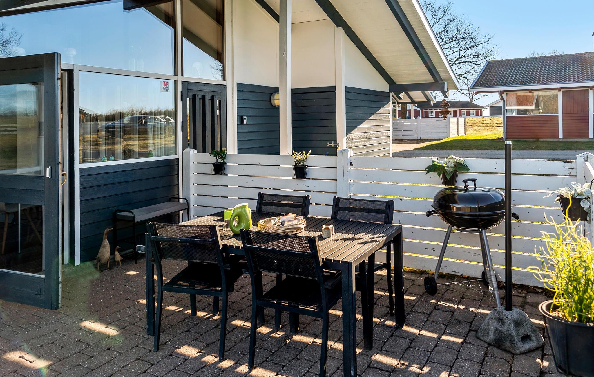 Hyggeligt træsommerhus med terrasse nær Løjt Strand og mange fritidsmuligheder for hele familien.