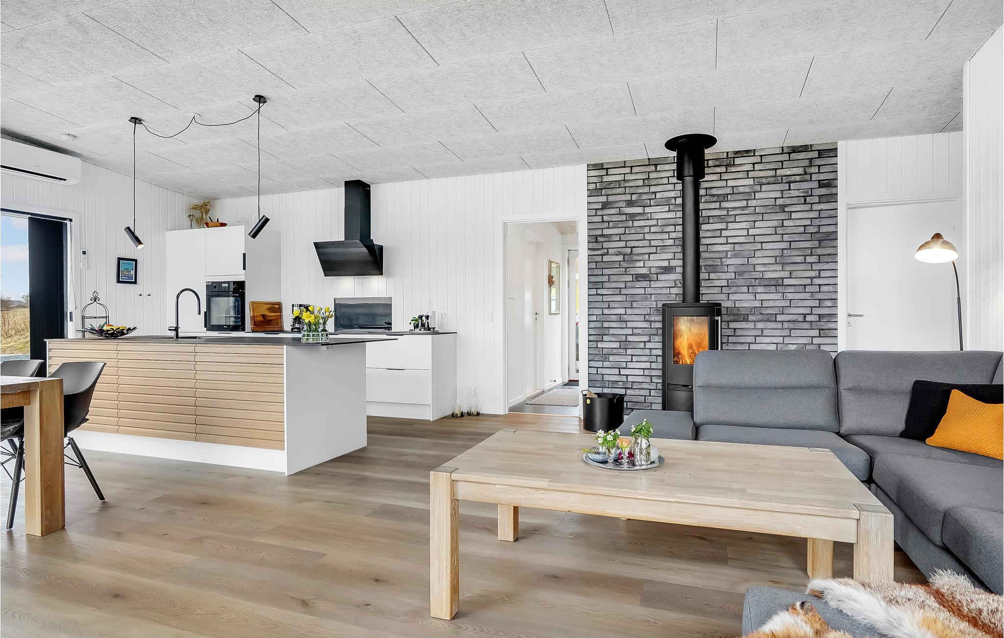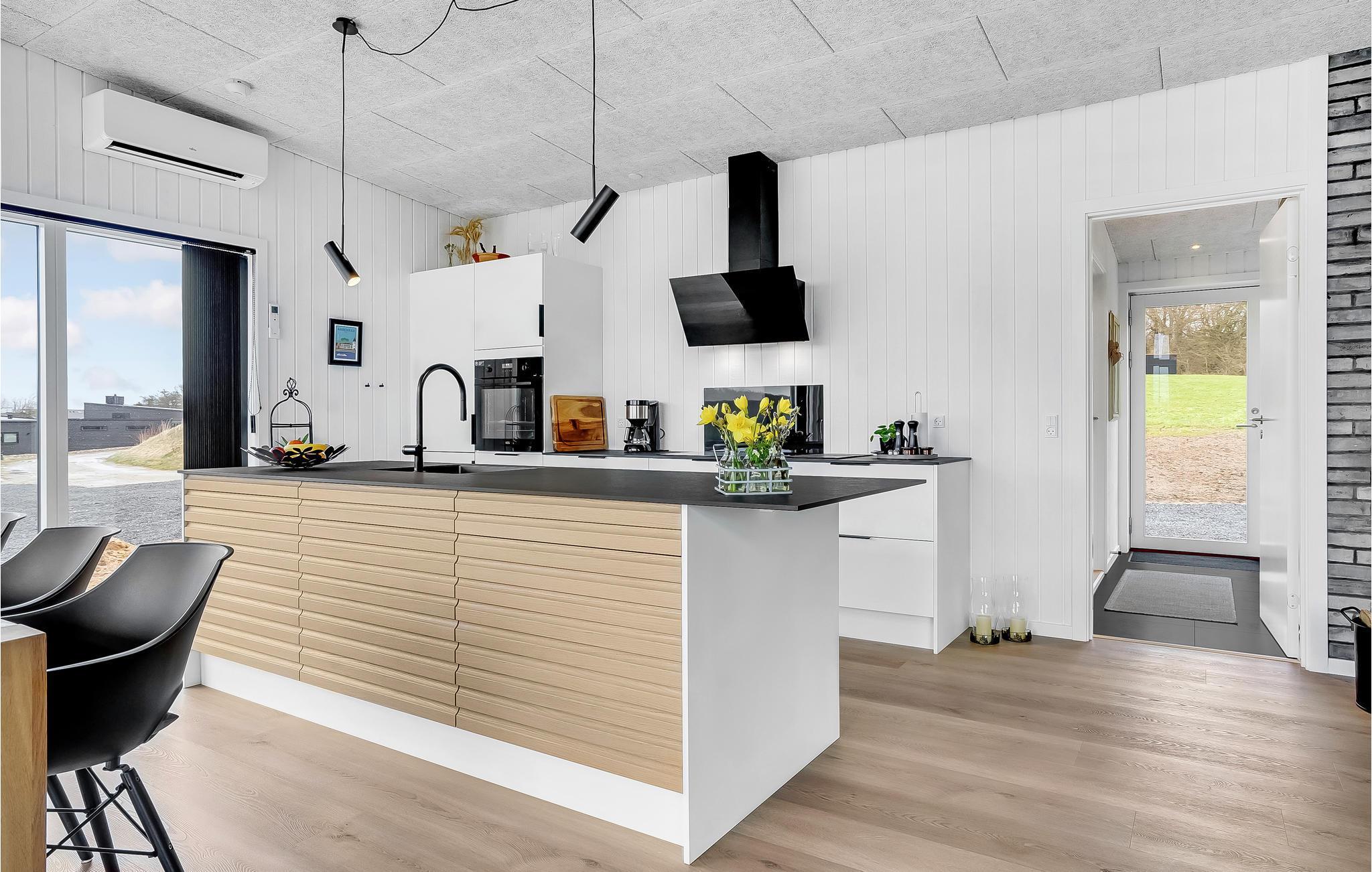 Der er lagt op til nogle herlige dage i det sønderjyske, hvor I kan lade batterierne op i dette lækre hus. Her er der lagt vægt på flotte detaljer og gode faciliteter, så det eneste I skal koncentrere jer om er at slappe af og have det rart. I opholdsrummet smelter rammerne indendørs og udendørs næsten sammen, for de store gulv til loft-vinduer sørger for en ubegrænset udsigt til de naturskønne omgivelser. Glæd jer til at dele dagens måltider i det lyse alrum, mens ilden buldrer i brændovnen, eller på terrassen, når solen er fremme.
