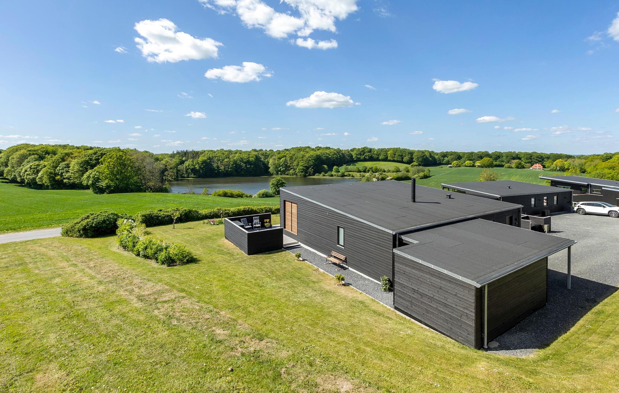 Indbydende sommerhus ved Løjt Strand med panoramaudsigt til sø, skov og natur, perfekt til afslapning i Sønderjylland.