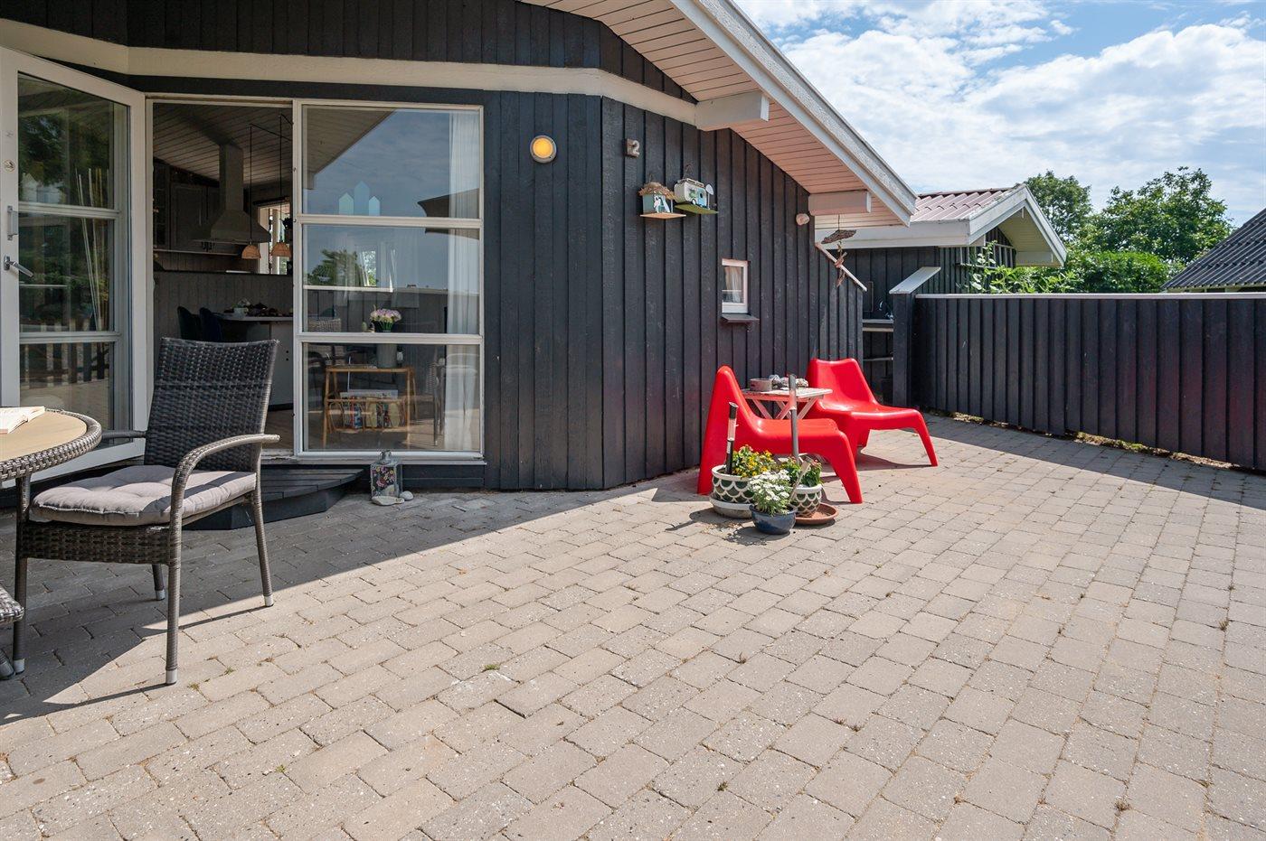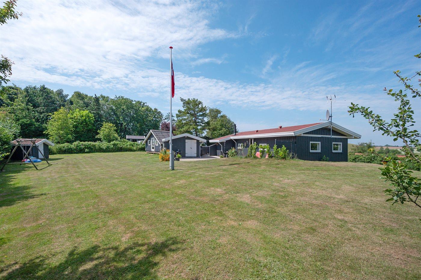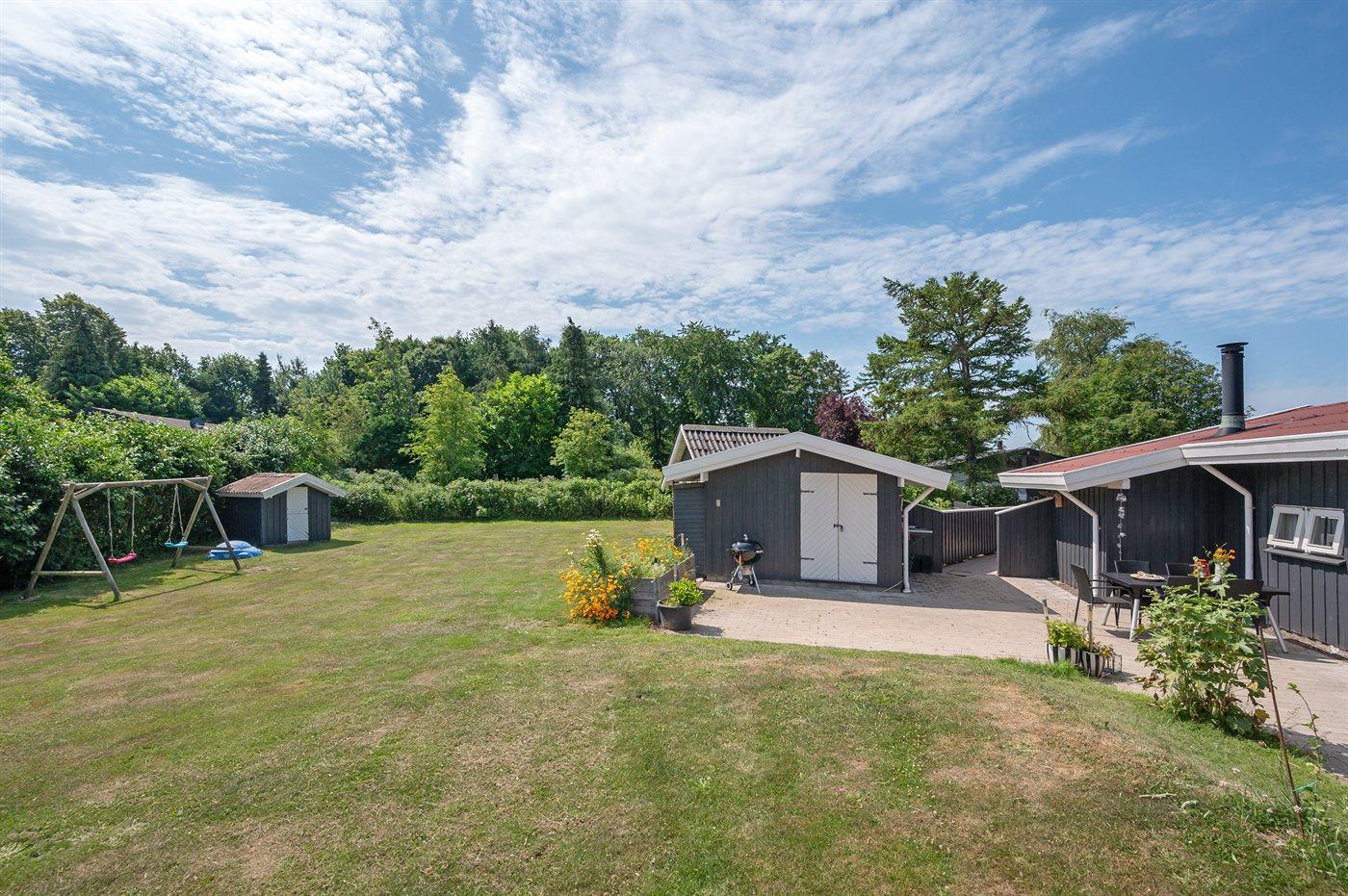 Ferieboligen er beliggende på en 1219 m² stor havegrund. Grunden er indhegnet. Der er 400 m til havet. Nærmeste forretning er beliggende i en afstand af 2000 m. Til ferieboligen hører 50 m² terrasseareal. Desuden er der 10 m² overdækket terrasse. Heraf i alt 10 m² lukket terrasse. Der er redskabsrum. Gynge. Sandkasse. Legehus. Parkering ved ferieboligen.