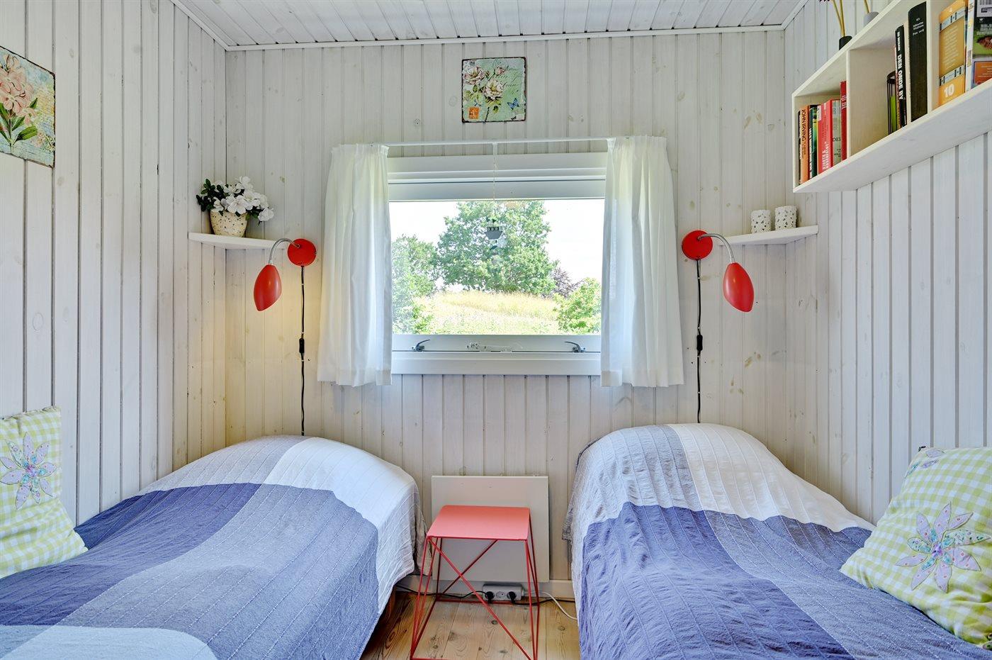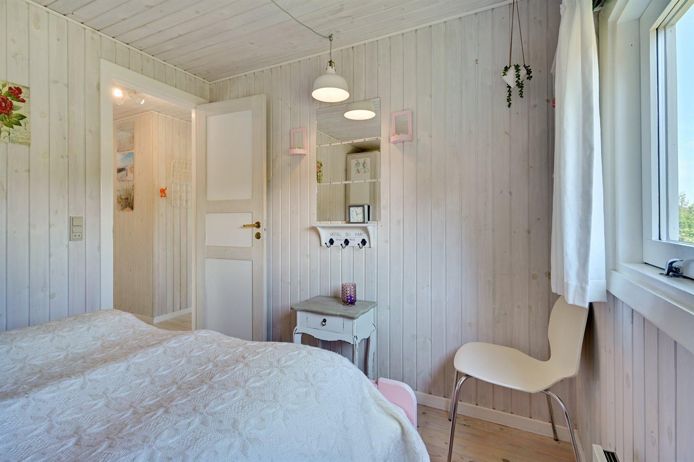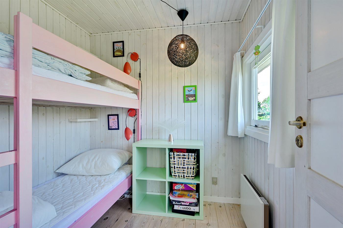 Der er i alt 3 soveværelser. Sovepladserne fordeler sig på: 2 sovepladser i dobbeltseng. 2 sovepladser i enkeltsenge. 2 sovepladser i køjeseng. Derudover er der 1 stk. barneseng.