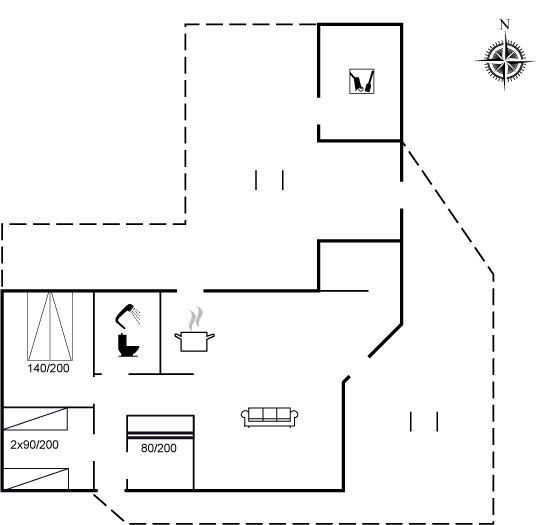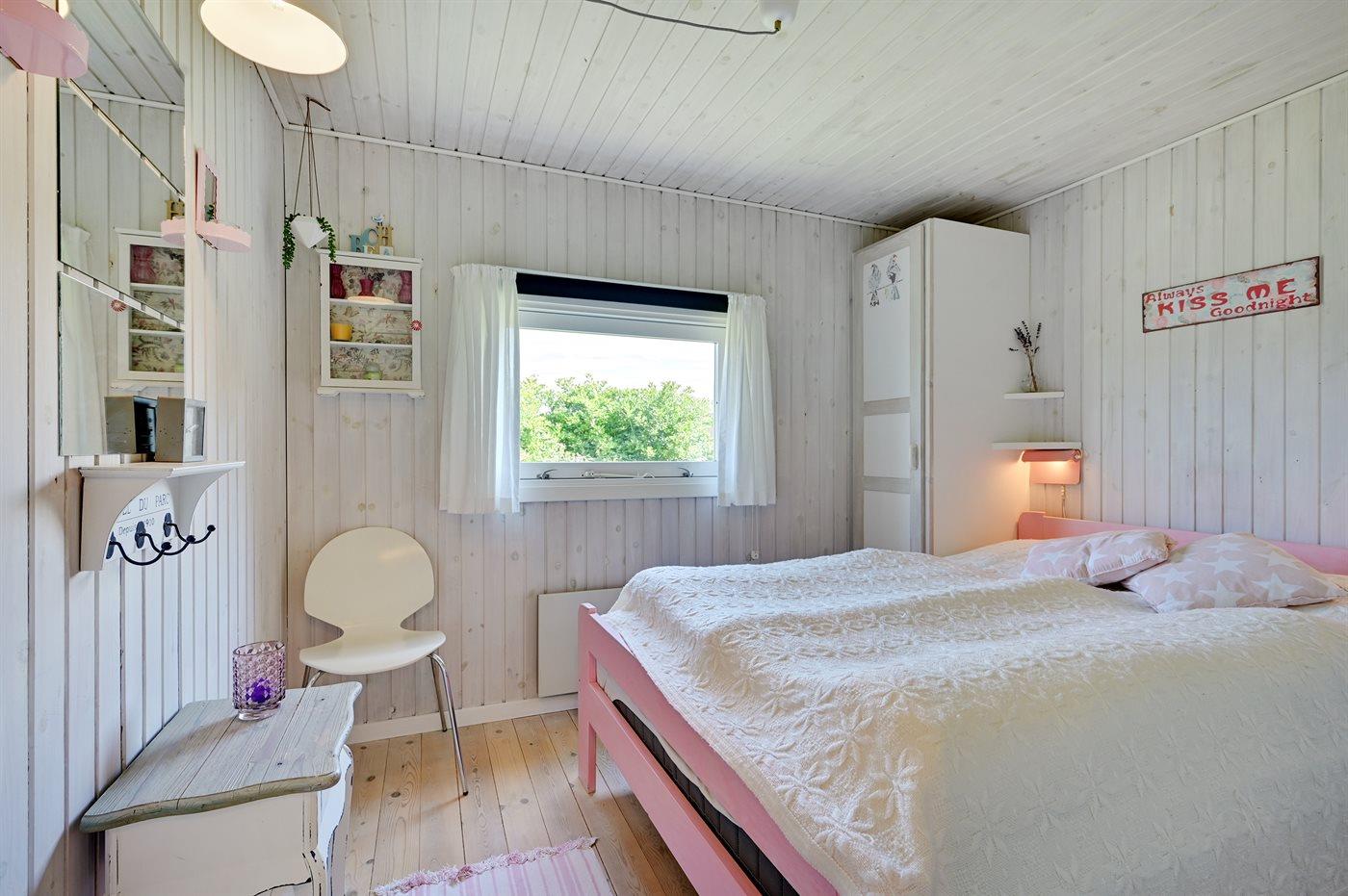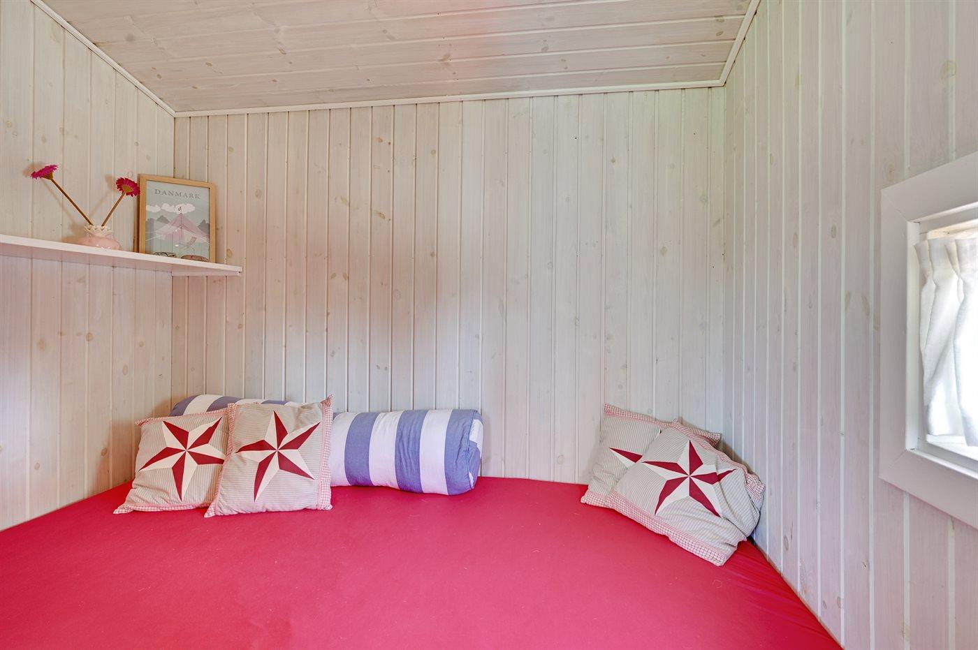 Der er i alt 3 soveværelser. Sovepladserne fordeler sig på: 2 sovepladser i dobbeltseng. 2 sovepladser i enkeltsenge. 2 sovepladser i køjeseng. Derudover er der 1 stk. barneseng.