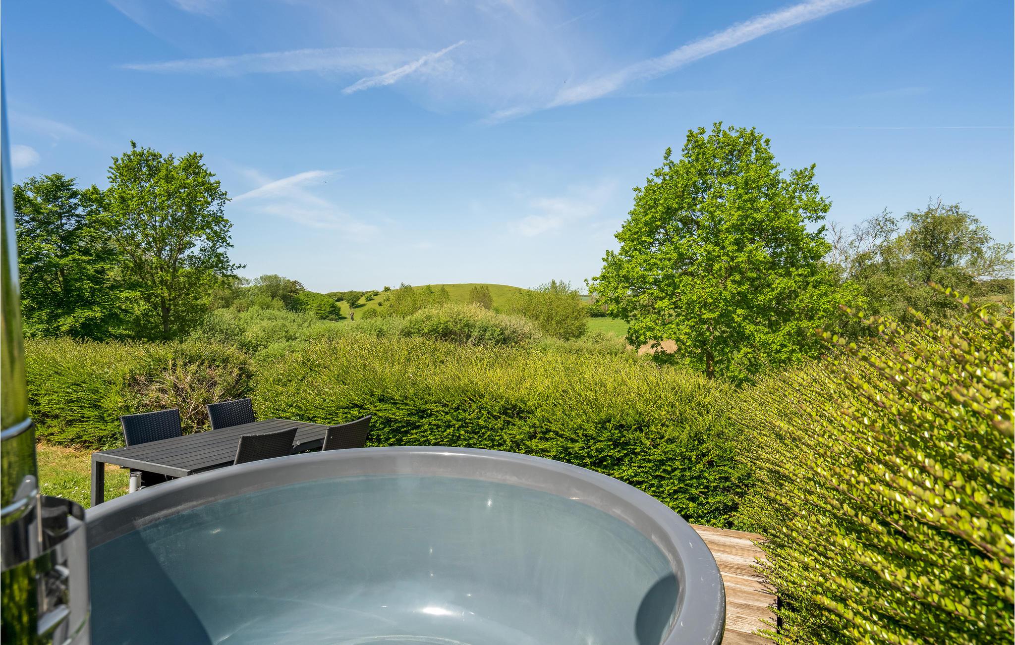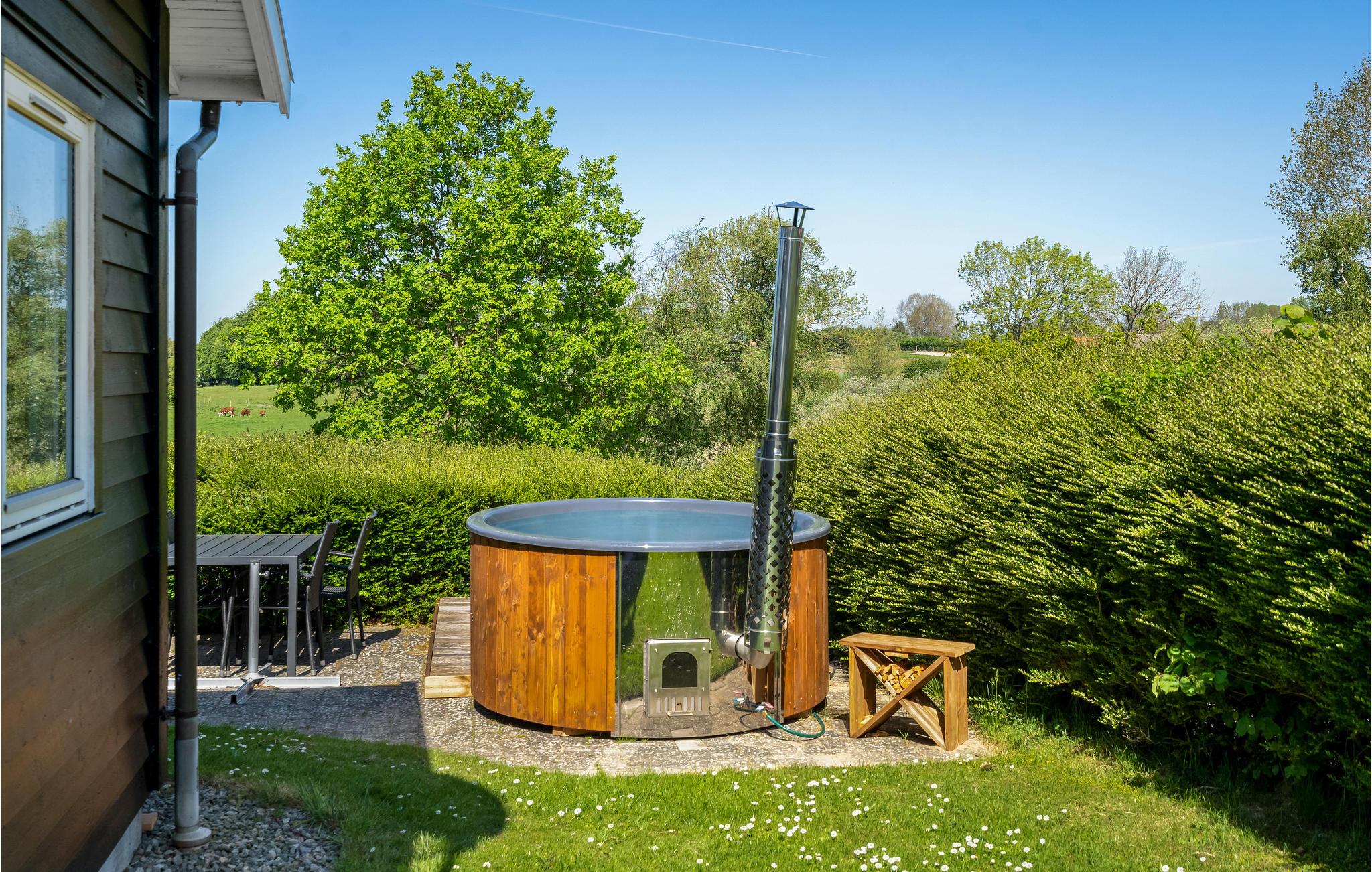 Hyggeligt træhus med vildmarksbad på Langeland
