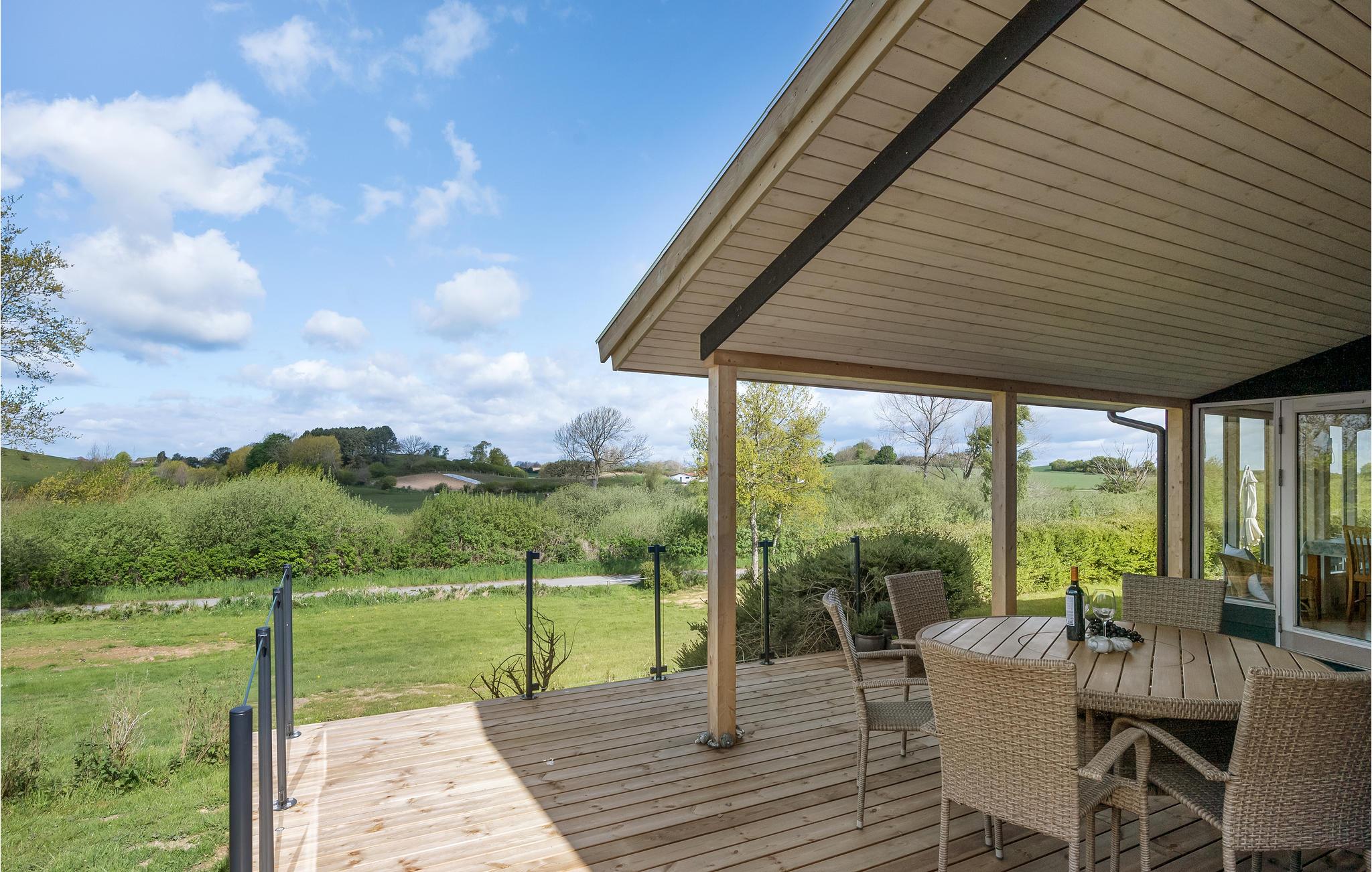 Hyggeligt træhus på Langeland med vildmarksbad og tæt på børnevenlige strande.