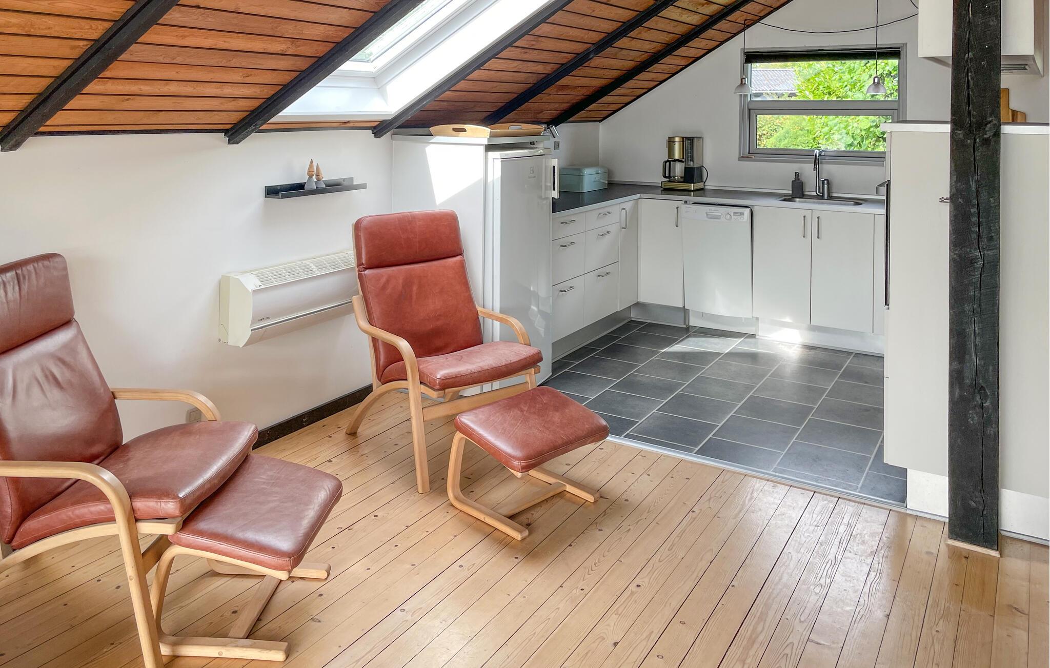Omgivet af en idyllisk have er dette hus det ideelle sted at sætte hverdagen på pause og slappe af. Komfortable sofaer, en brændeovn og et moderne køkken skaber en afslappet atmosfære, hvor I straks vil føle jer hjemme. Uanset om I tilbringer aftenen på sofaen med at se en god film eller tilbereder lækre måltider sammen, finder I hurtigt indre ro og fornyet styrke her.