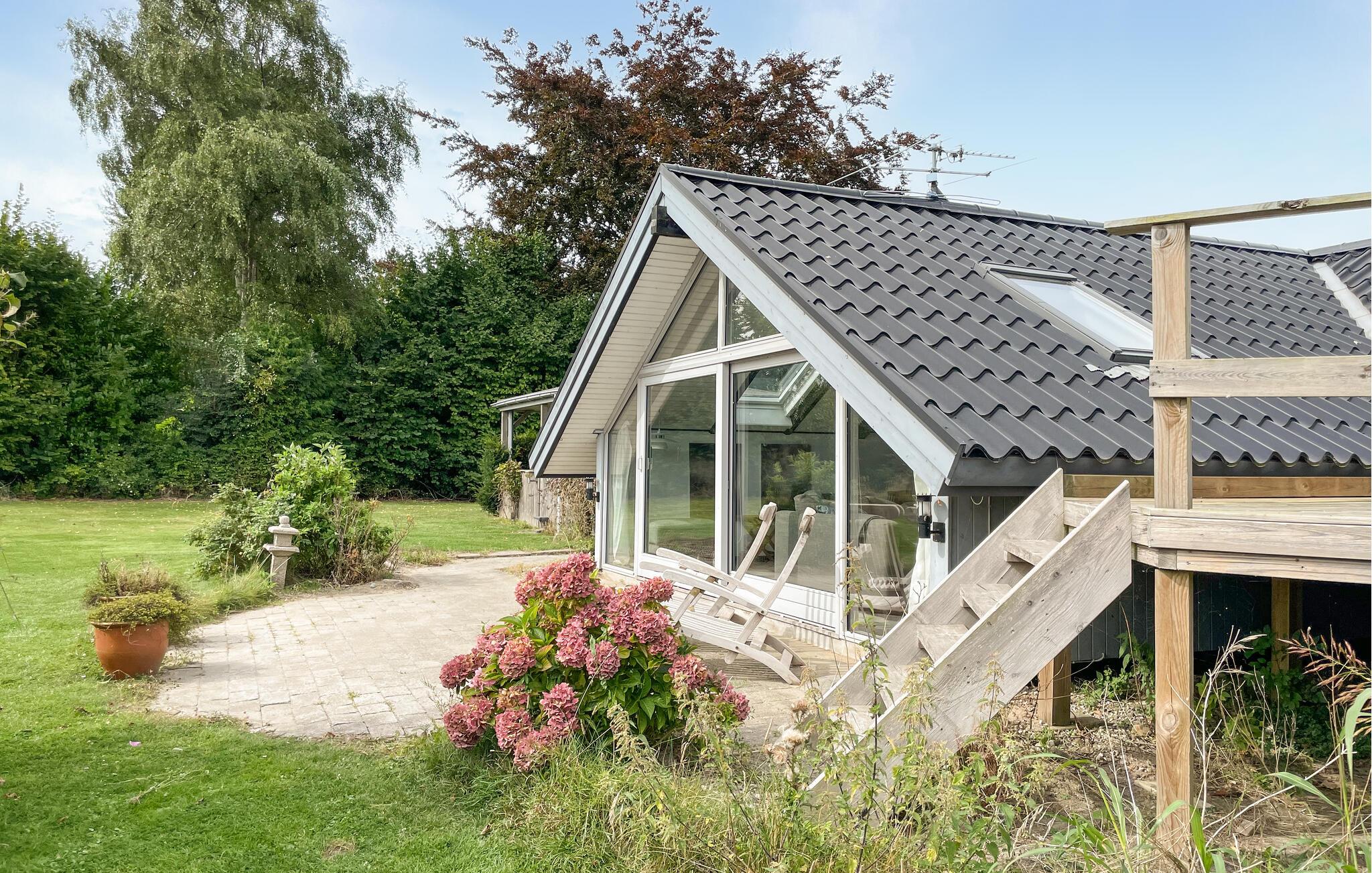 Hyggeligt feriehus nær havet med have, terrasse og moderne faciliteter for afslappende ophold.