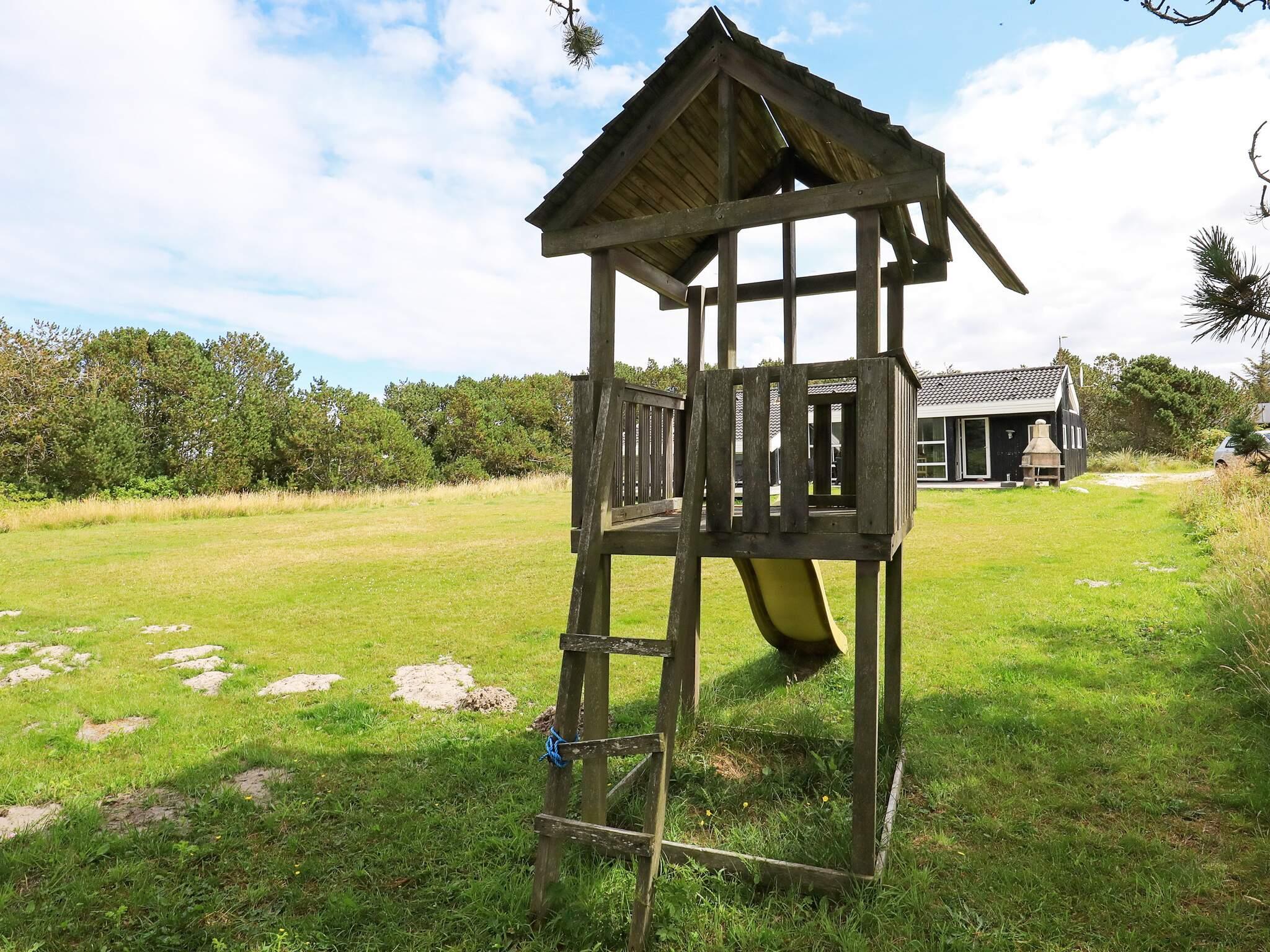 Grunden er godt afskærmet med beplantning med to terrasser, hvoraf den ene ligger mod sydvest og den anden lille morgenterrasse ligger mod øst. Haven er ideel til leg, grill og hygge for hele familien. Der er trampolin (benyttes på eget ansvar/forsikring).