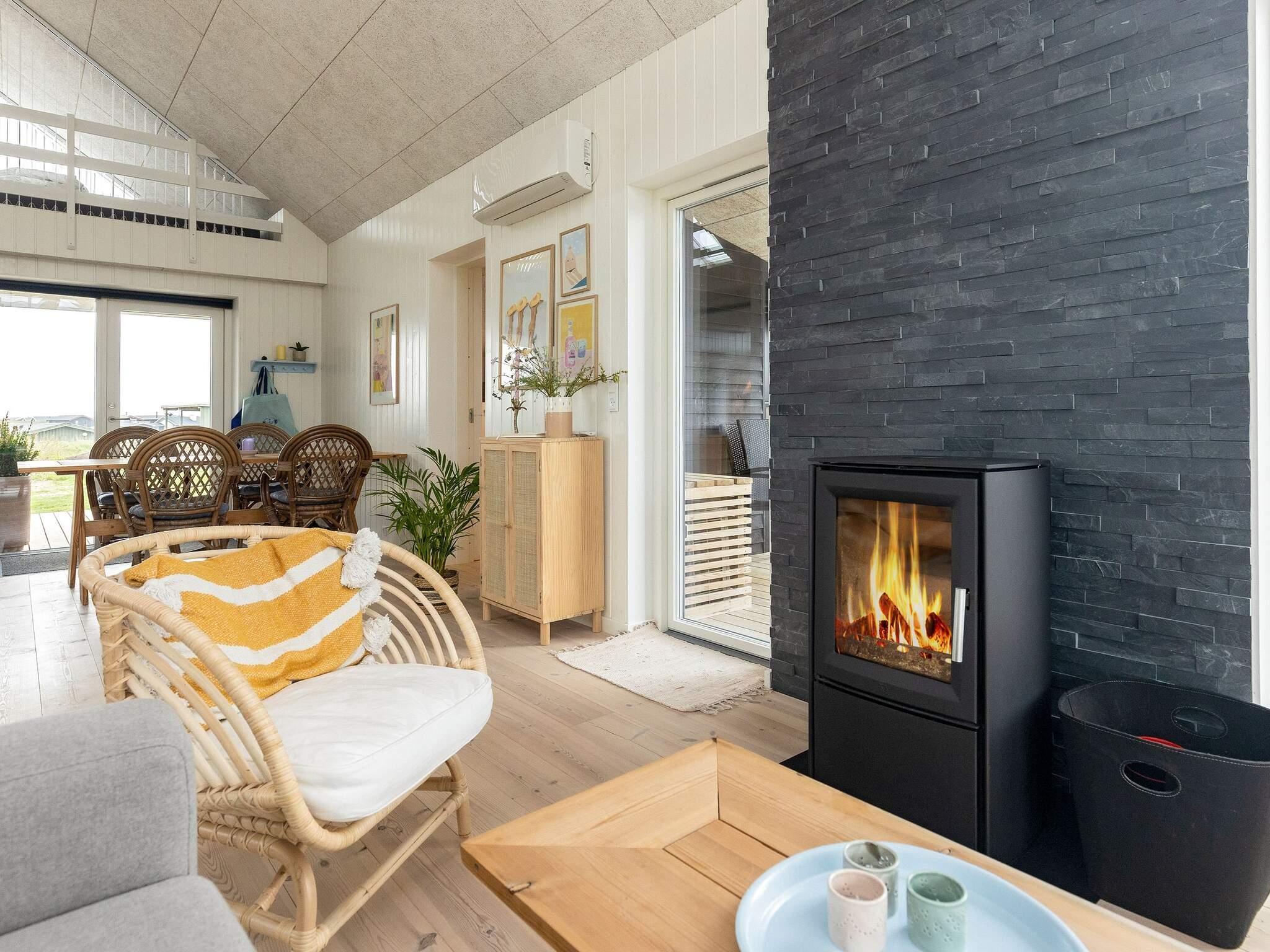 I Løkken finder I dette sommerhus i nordisk stil med havkig. Her er der virkelig mulighed for at få en helt fantastisk og afslappet ferie uanset årstid. Sommerhuset er moderne og rummeligt, så er man et vennepar, en lille familie og vil man gerne have et bedsteforældrepar med på ferie, er der gode muligheder for dette, da huset har et dejligt, opvarmet anneks. Der er et stort, åbent opholdsrum med store vinduespartier, som sikrer optimalt sollys gennem hele dagen. Veludstyret køkken, spisekrog, sofagruppe og brændeovn og derudover et stort soveværelse, stor hems til kip med plads til to samt anneks med dobbeltseng. Husets badeværelse er med bruser, gulvvarme og vaskemaskine. Der er carport helt oppe ved huset, hvor bilerne kan stå i læ og bagagen let kan løftes ind i huset, eller skal bilen oplades er der både en hurtig og langsom oplader. Udlejes ikke til ungdomsgrupper