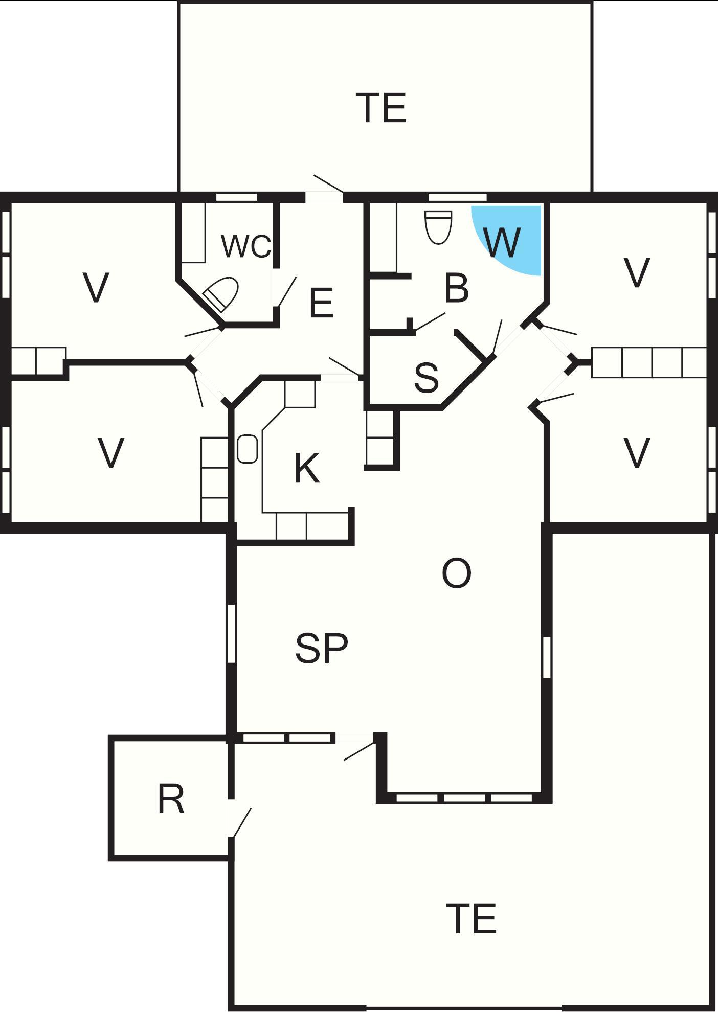 4 Soveværelser: (1DS)+(2S)+(2S)+(1DS), barneseng