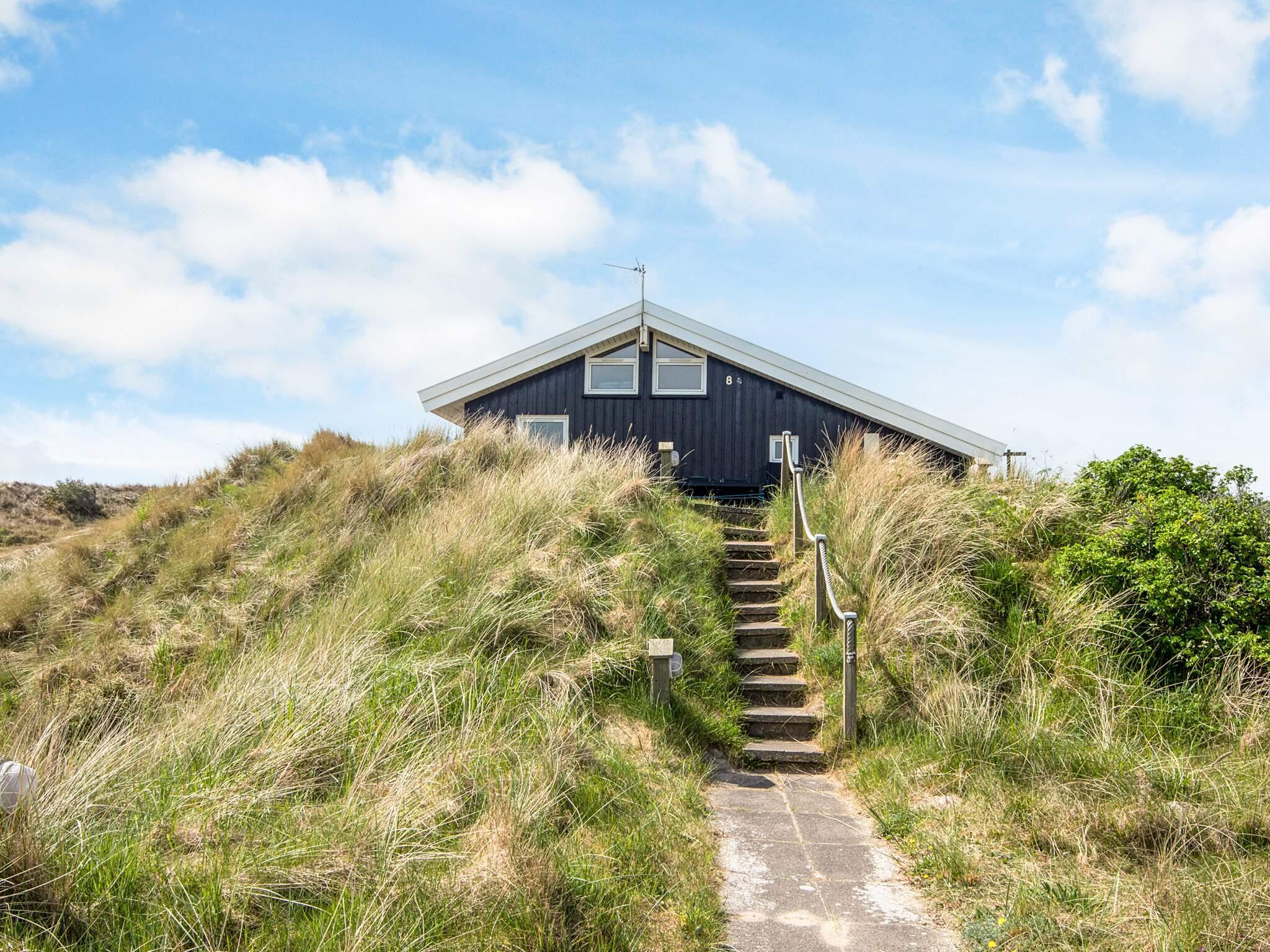På toppen af en kuperet klitgrund ligger dette kvalitetshus med panoramaudsigt over Vesterhavet fra bænken på grunden og et lille havkig fra høj på grunden. Huset er indrettet i moderne, dansk stil med køkken/opholdsrum i åben forbindelse og med stort terrasseareal mod både øst, syd og vest. Stuen er meget rummelig og møblementet i høj kvalitet og uhyre smagfuldt sammensat. Der er ca. 100 m til hav og strand og ca. 500 m til Løkken by, der tilbyder sine feriegæster en stor mangfoldighed af aktivitets-, spise- og shoppingmuligheder. Fra husets p-plads er der ca. 20 trappetrin til husets indgang. Udlejes ikke til ungdoms- og håndværkergrupper.