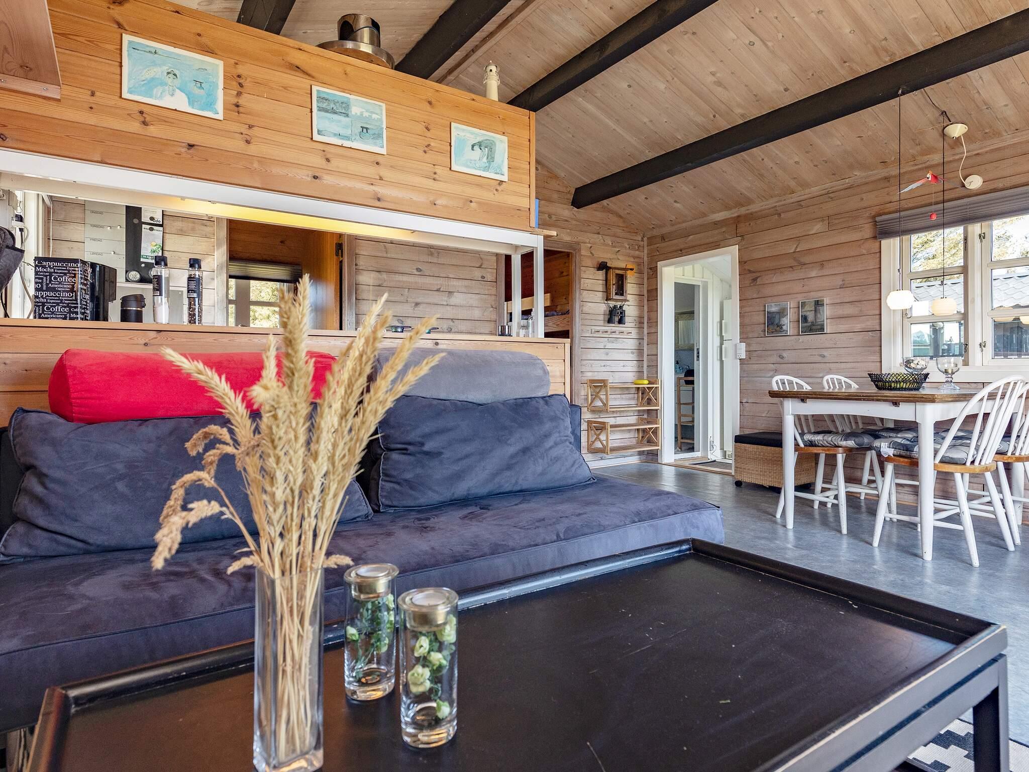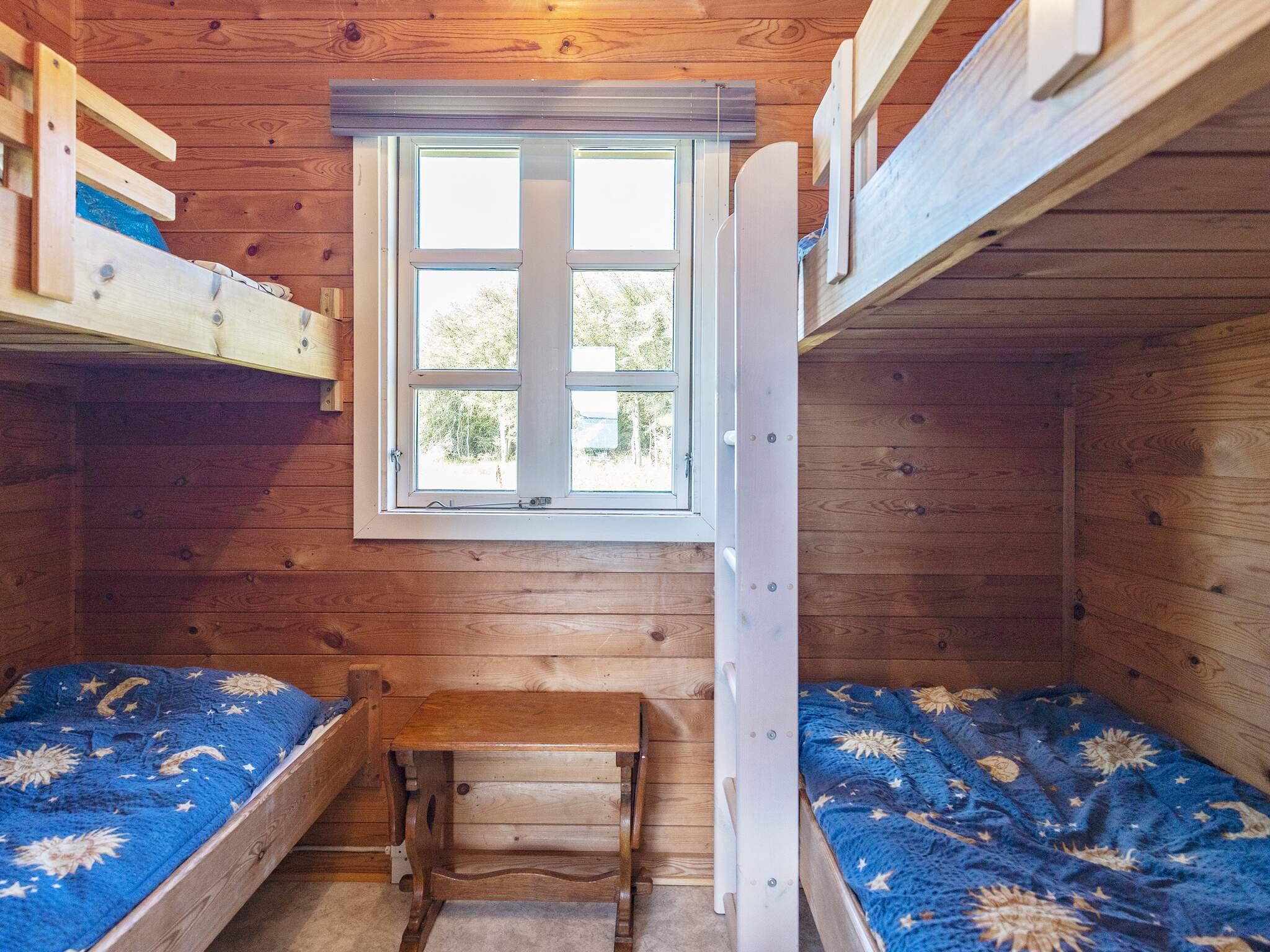 Huset har to soveværelser: et med dobbeltseng og et andet med to køjesenge, hvilket giver i alt fire sovepladser, hvilket gør det perfekt til familier eller små grupper. Interiøret er praktisk og komfortabelt, så alle kan nyde et behageligt og stressfrit ophold.