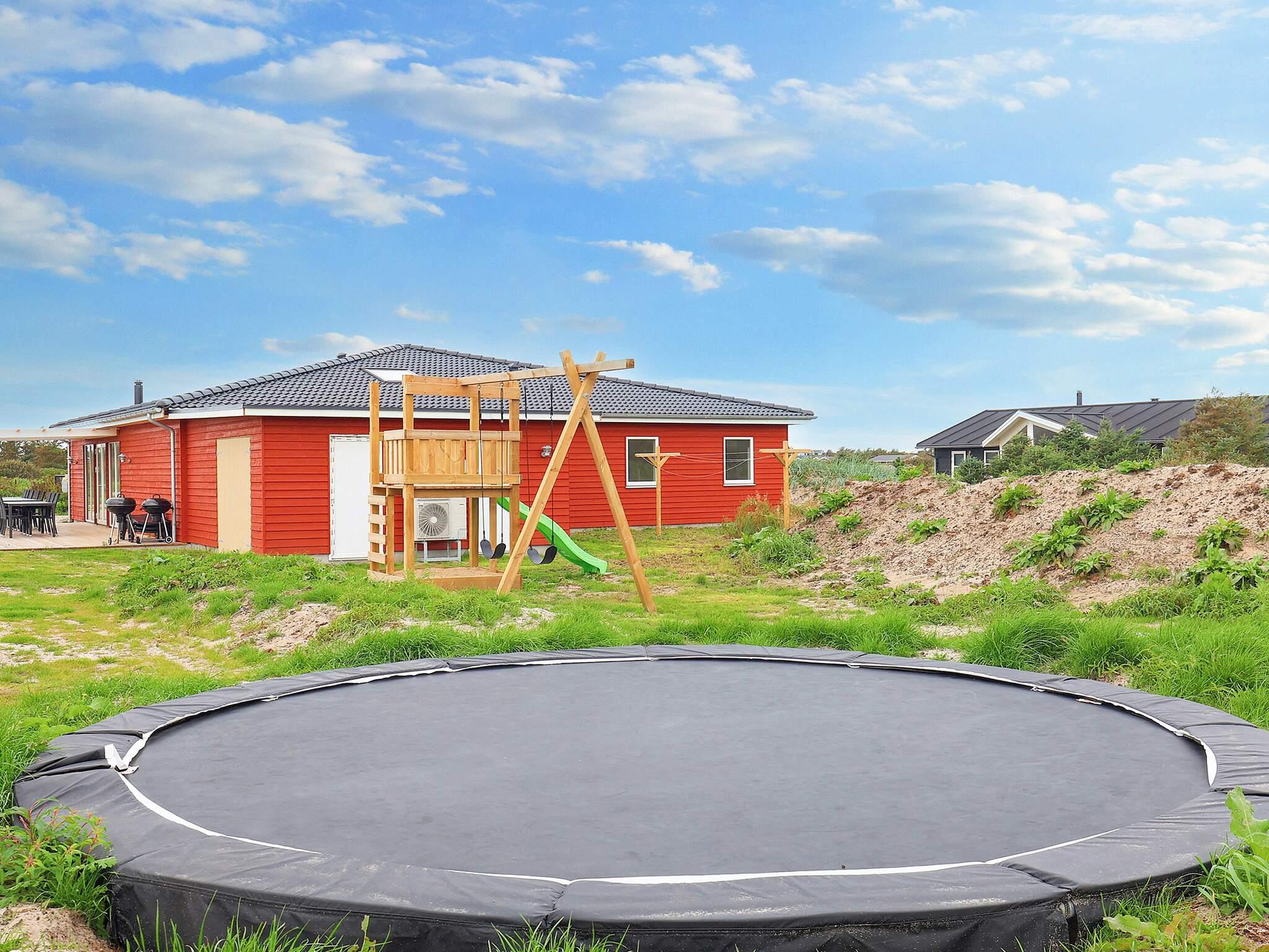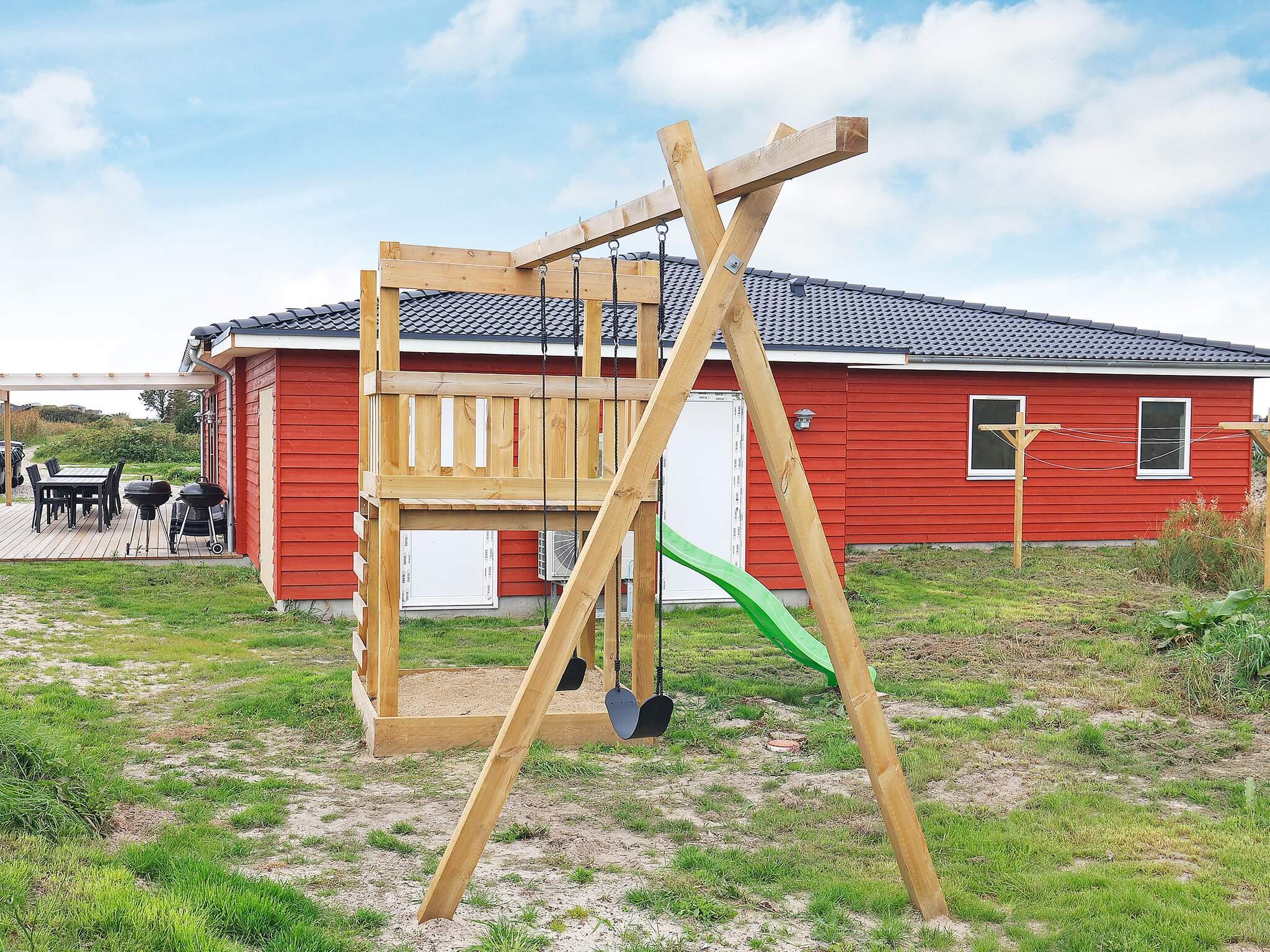 På den delvist overdækkede terrasse er der rig mulighed for at nyde den danske sol. Her er havemøbler og grill, så I kan holde grillaften. Desuden er der gynge, trampolin (på eget ansvar/forsikring) og legetårn til børnene.