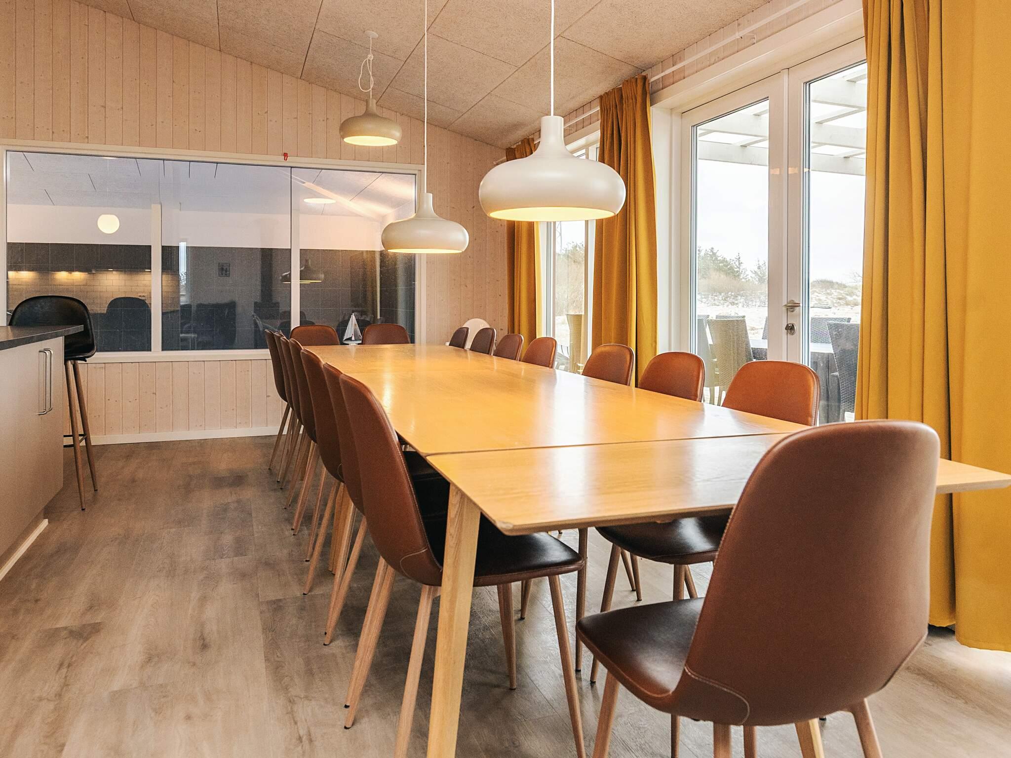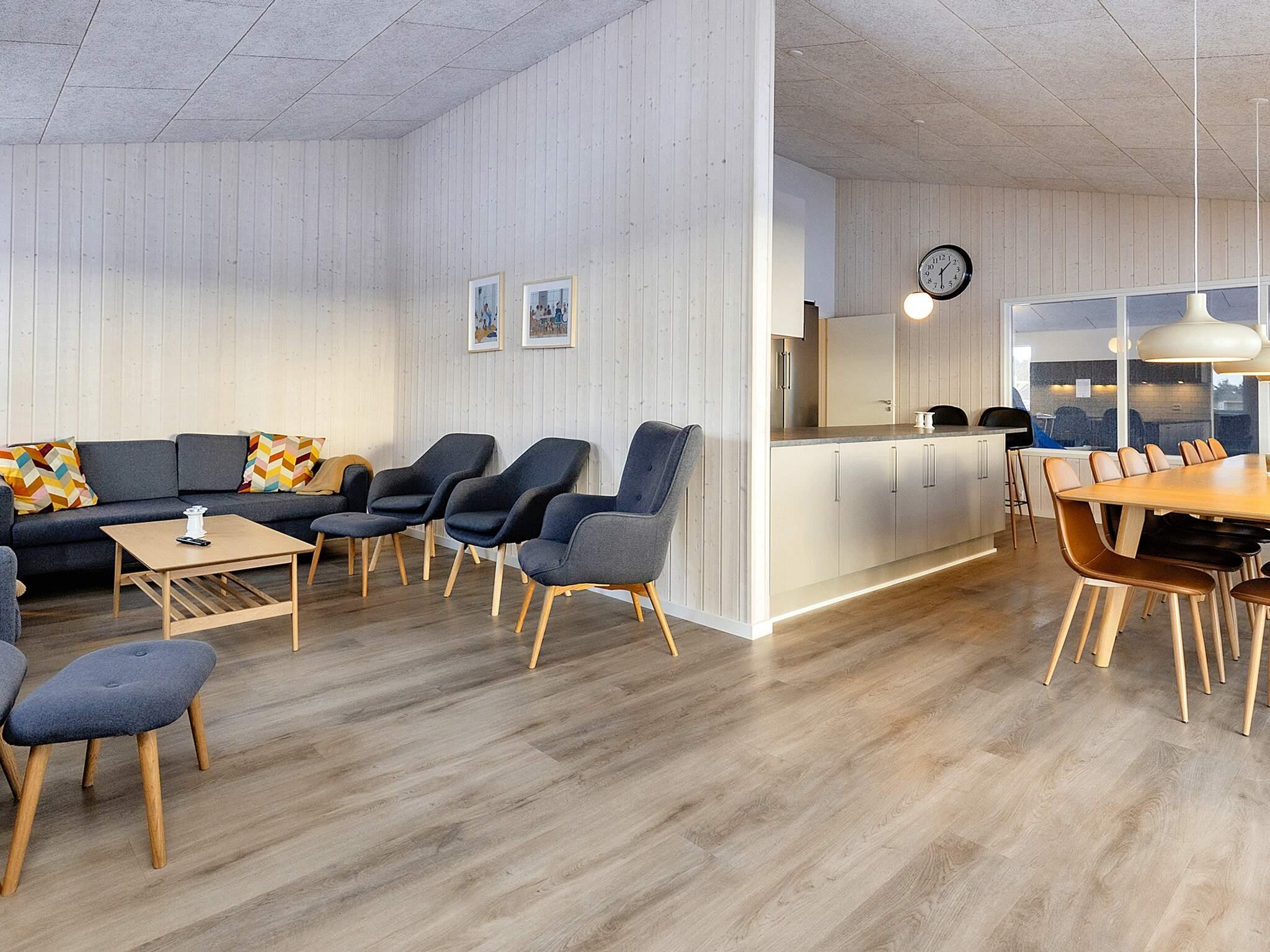 Sommerhusets hjerte udgøres af et stort og åbent opholdsrum med god akustik i forbindelse med det godt udstyrede køkken. Her er plads til at alle kan mødes og hygge med madlavning, måltider, spil, en god film etc. Rummet har flere vinduer, så det fascinerende, nordjyske lys strømmer ind, og på de varme dage kan I lukke op til terrassen.