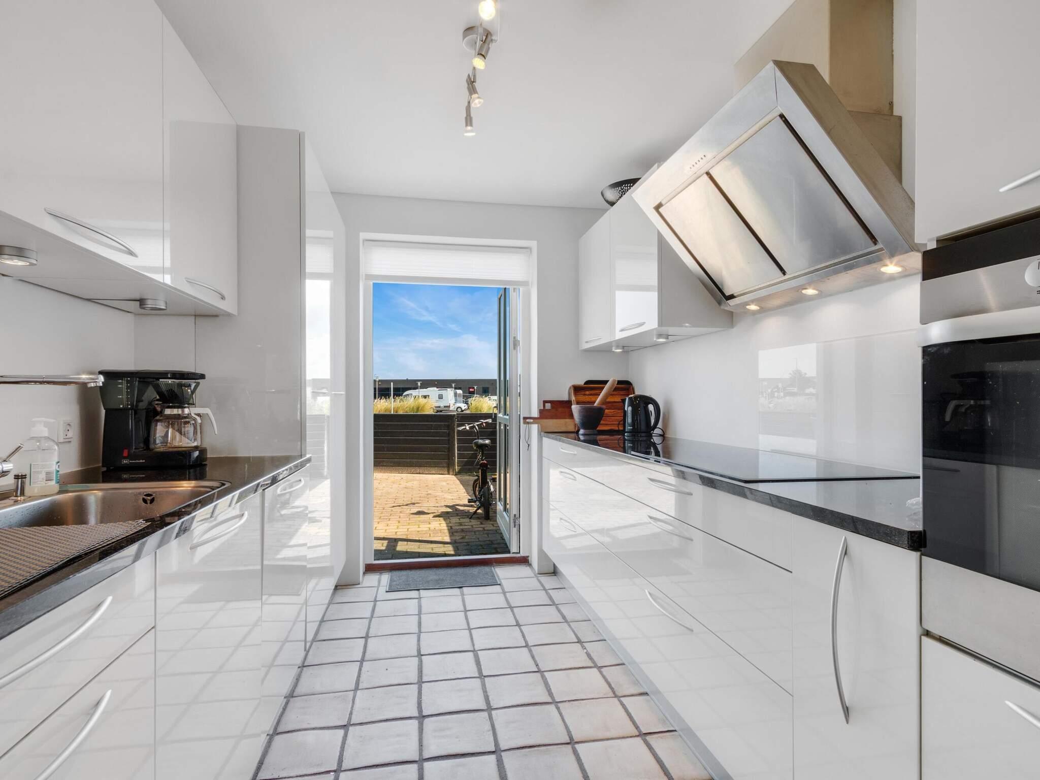 Køkken: Kulgrill, ovn, køleskab, køle-frys, mikroovn, induktionskomfur, kaffemaskine, opvaskemask.