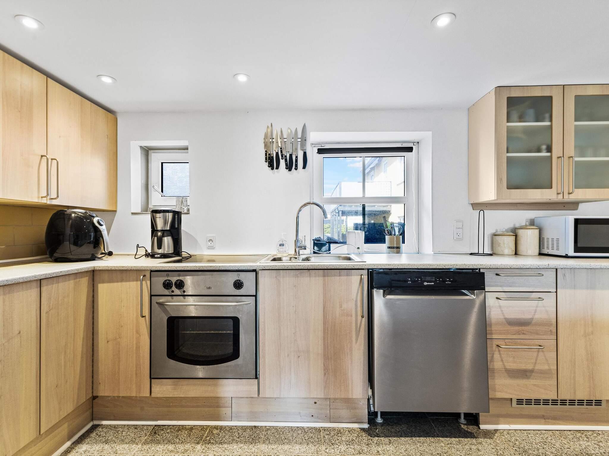 Køkken: Kulgrill, ovn, køleskab, køle-frys, mikroovn, induktionskomfur, kaffemaskine, opvaskemask.