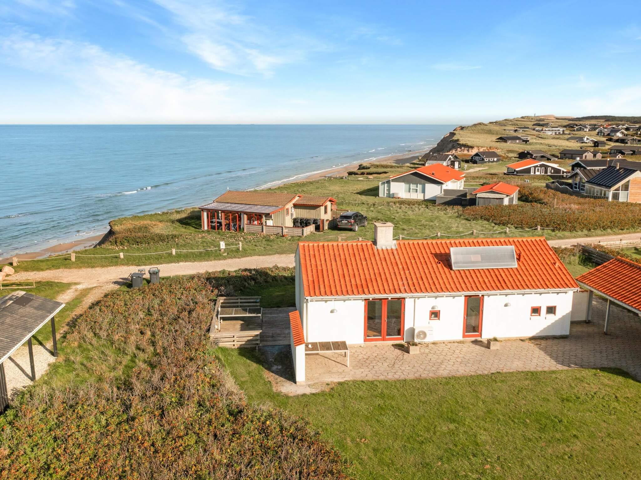 Udendørsareal: Terrassen på feriehuset tilbyder en storslået udsigt over både Nordsøen og det omkringliggende område. Feriehuset ligger roligt for enden af en blind vej, så du kan virkelig være uforstyrret her. Den omgivende natur er rå og smuk! Hvis du vil opleve mere, kan du blot tage en tur til stranden eller køre til Løkken eller Lønstrup, som er meget populære feriesteder på Danmarks nordvestkyst.