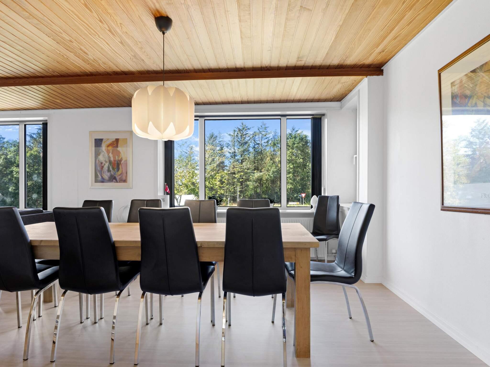 Dette store sommerhus med pool, spa og sauna rummer plads til 12 personer, fordelt på husets to etager. Stueetagen udgør poolområde med spa, sauna og badeværelse, køkken, toilet og et stort fællesrum med plads til spisning og hygge samt soverum. På første sal findes soverum og badeværelse samt en udestue. Huset er ikke et moderne og minimalistisk hus, men et super hyggeligt hus, hvor den store pool vitterligt er husets kerne!