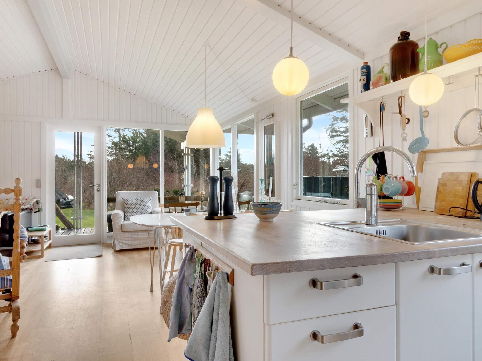 Haven er et afsondret sted at solbade i den milde danske sommer, og på køligere dage er de indbydende værelser inde i huset det perfekte sted at slappe af. For dem, der elsker naturen, ligger stranden kun 600 meter væk, hvor man kan slappe af ved vandet. Der er lidt længere til indkøbsmuligheder, 2,5 kilometer, men beliggenheden tilbyder stadig en fredelig, landlig oase med nem adgang til alt, hvad man har brug for.