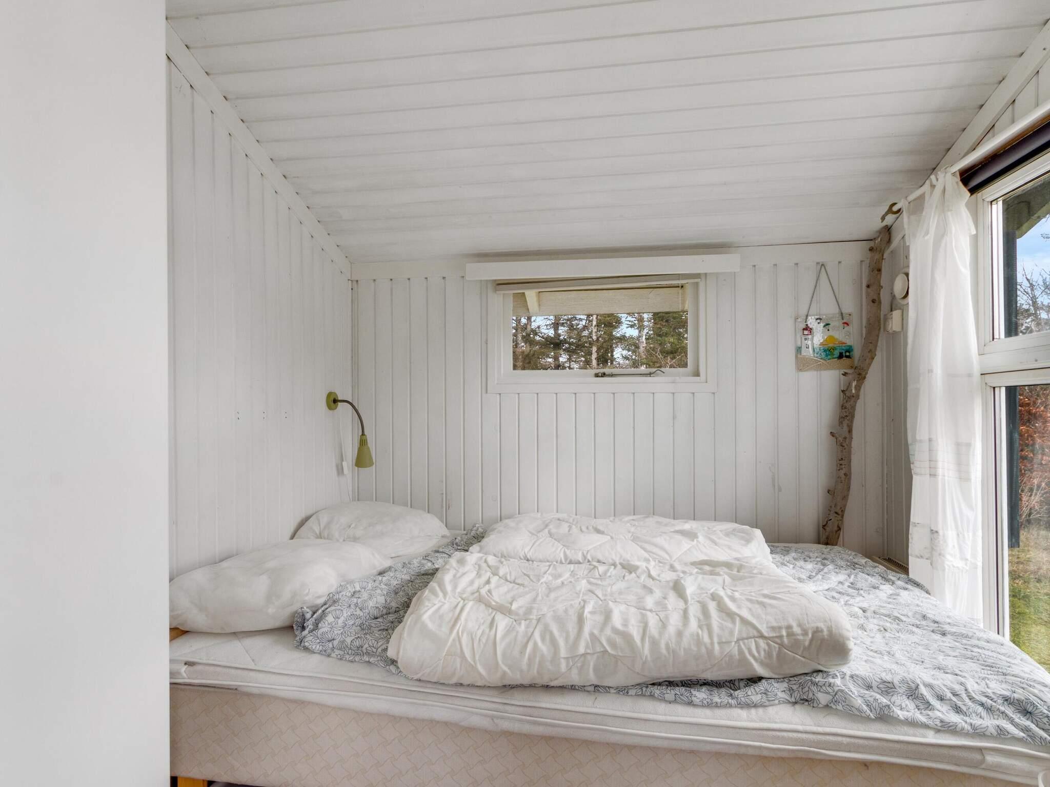 Dette charmerende sommerhus ligger i skovens fred og ro og er det perfekte tilflugtssted for dem, der søger fred og afslapning. Den hyggelige stue har en dejlig brændeovn, der skaber rammerne for varme, afslappende aftener. Den åbne planløsning strækker sig ind i spisestuen og køkkenet, hvilket gør det nemt at være sammen og nyde måltiderne. Huset har to indbydende soveværelser – det ene med en dobbeltseng og det andet med to enkeltsenge – ideelt til familier eller små grupper. Uanset om du tilbringer tiden indenfor eller nyder den fredfyldte have, tilbyder dette hus en fredelig pause fra hverdagen.