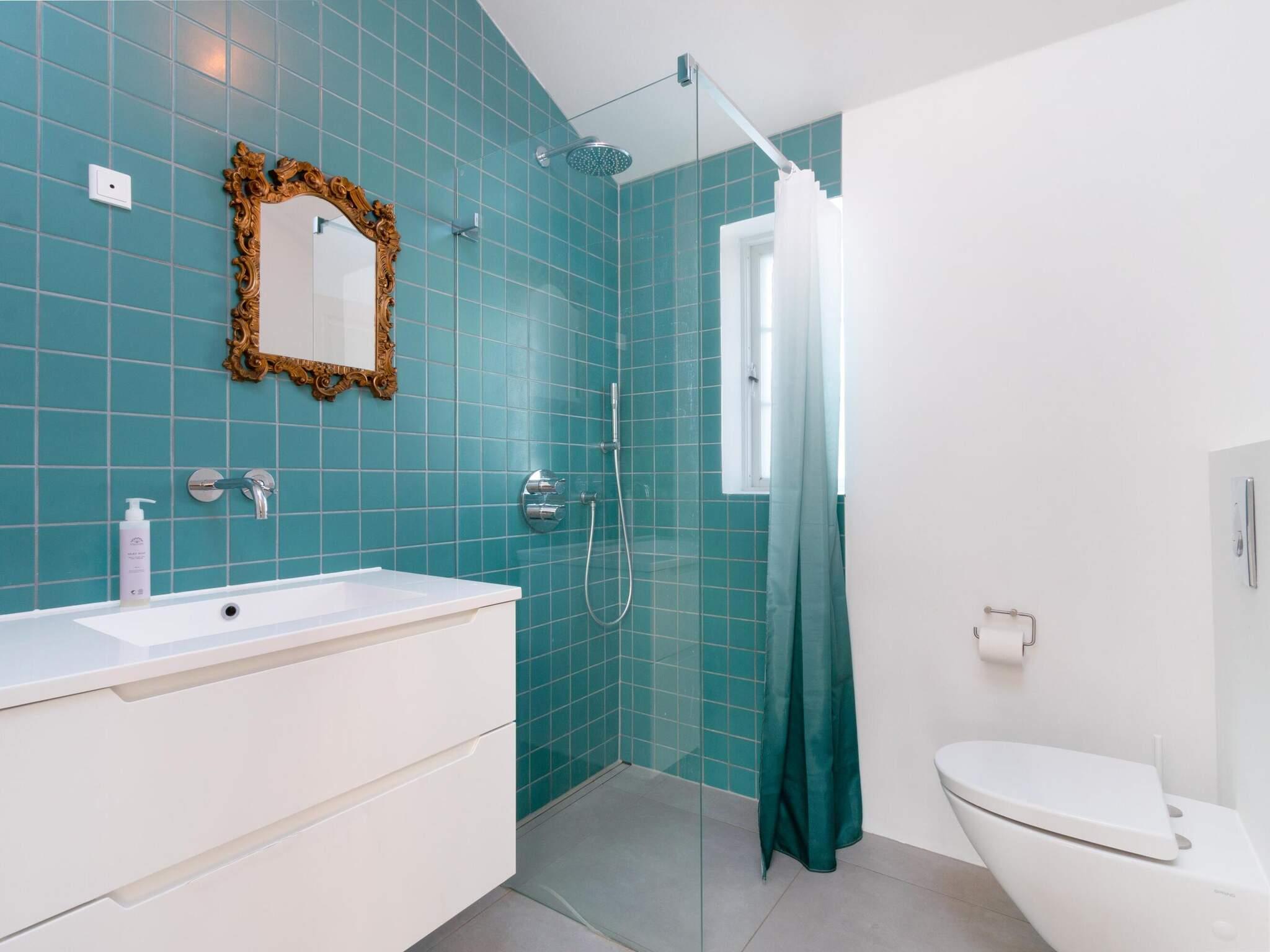 ... but here is a selection. You can access the apartment from the back stairs of the building, so there's no one to keep an eye on whether you'll be late to bed. There are two bedrooms, each with a double bed. There's no wifi - it's zen and peaceful. You are allowed to bring a small dog. There is a single bathroom with the most beautiful blue tiles. There is an open kitchen/living room and plenty of opportunity for socializing, and utilities are included in the rent. The apartment is non-smoking and youth groups are not allowed.”
