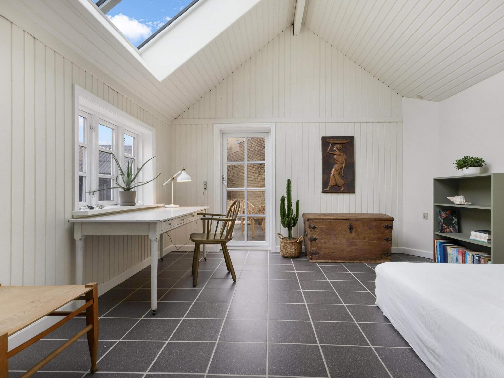 På første sal, der er nyrenoveret i 2023, finder du et stort værelse med fire senge og arbejdsplads samt et komfortabelt soveværelse med dobbeltseng. Alle senge har kvalitetsmadrasser, der sikrer en god nats søvn. Hvis det ønskes, kan der arrangeres to ekstra senge i vinterhaven i stueetagen. Den lukkede have er et højdepunkt med en dejlig terrasse, der tilbyder både spise- og opholdsområde, en græsplæne til leg og afslapning, en gasgrill og en udendørs bruser – perfekt efter en dag på den nærliggende strand. Der er privat parkering ved huset og yderligere parkeringspladser på gaden.