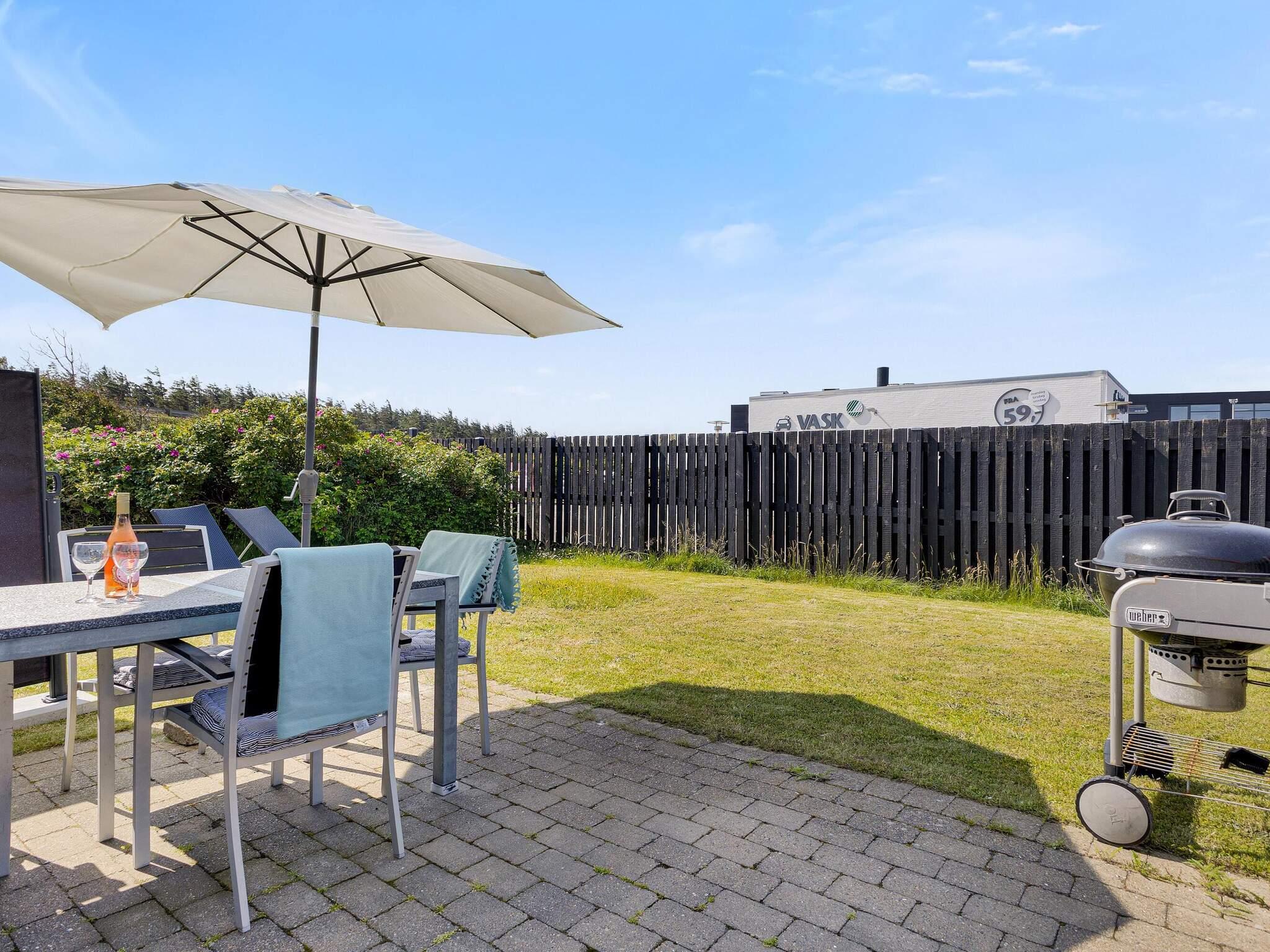 From the cozy and spacious kitchen/living room, you have access to the house's garden with a dining area for 6 people. As the house is an end-terrace house, you have the whole end of the building to find nice shelter, almost no matter which way the wind blows. As you are allowed to bring a small dog, the sheltered garden is ideal. It's less than 1 kilometer to Løkken Beach, even shorter to the city's pedestrian environment, and you can see the shopping opportunities from the garden.