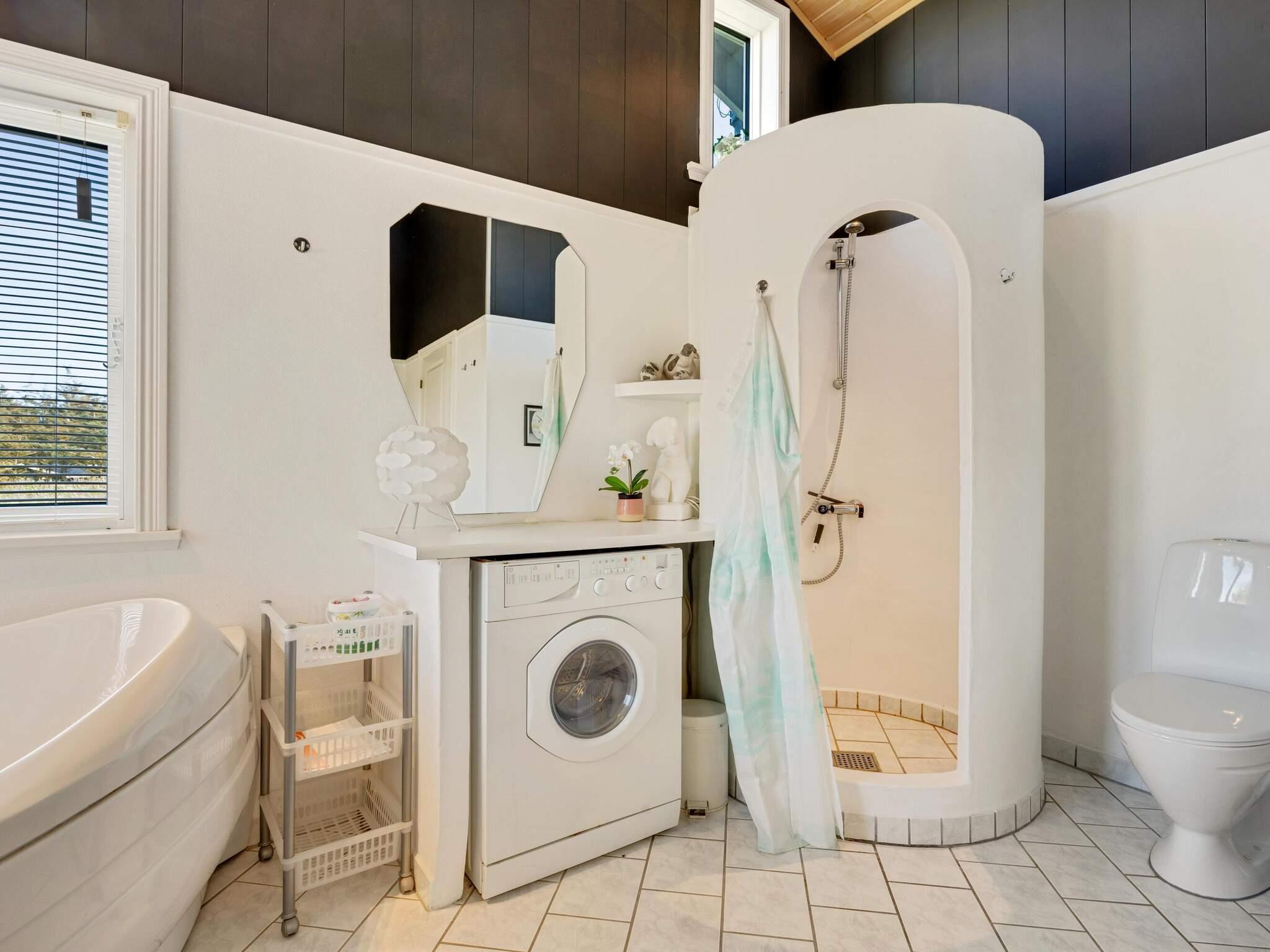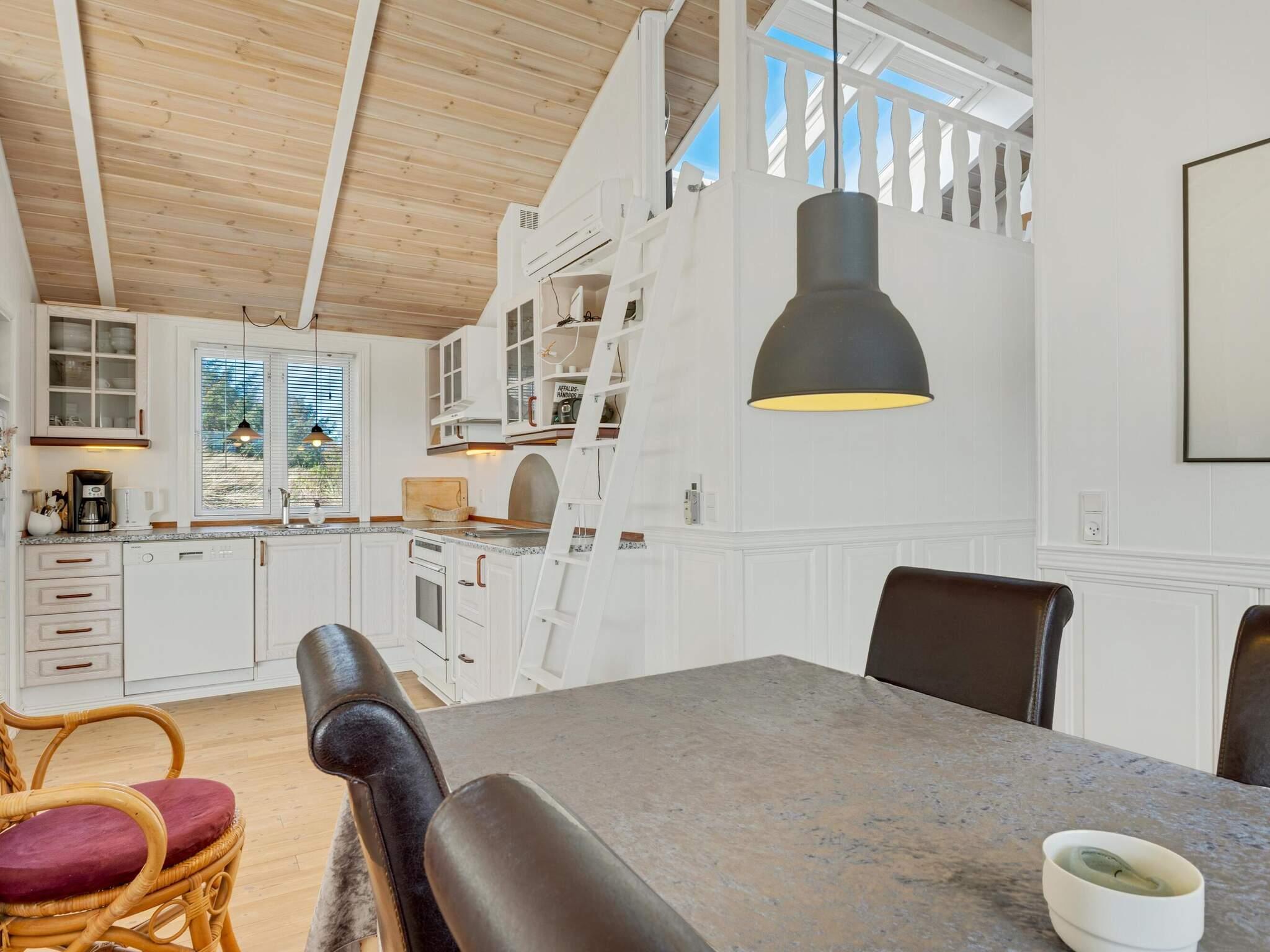 I huset er der hele to badeværelser – hvoraf det ene har sauna og spa – tre soveværelser og en stor, lys køkkenstue. Her er en rigtig sommerhusstemning med blandt andet den hyggelige spiseplads, paneler på væggene og det dejlige sofahjørne med pejs og udsigt til den smukke natur udenfor. Her er en hems, hvor børnene kan trække sig tilbage og nyde lyden af stuegulvtæppet og knitren fra pejsen. Et rigtig dejligt sommerhus, der giver mange timers ferieafslapning.