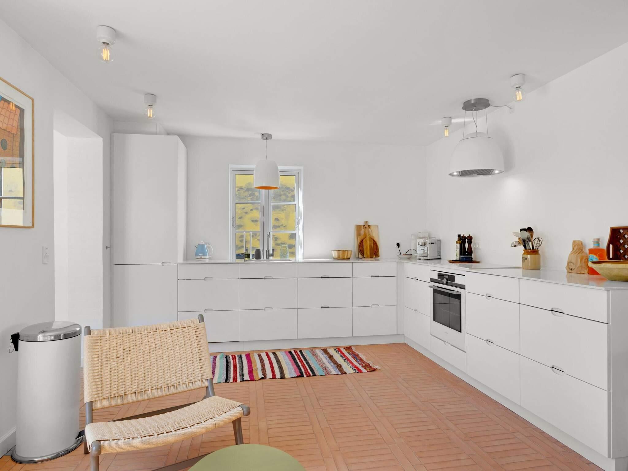 Køkkenet og stuen udgør et stort og charmerende rum, der skaber en perfekt atmosfære for samvær, madlavning og hygge indenfor. Det lyse køkken er indrettet med omhu og byder på masser af plads til at tilberede lækre måltider sammen. Ved siden af køkkenet finder du spisepladsen med plads til 8 personer langs det fine bord med bænk.