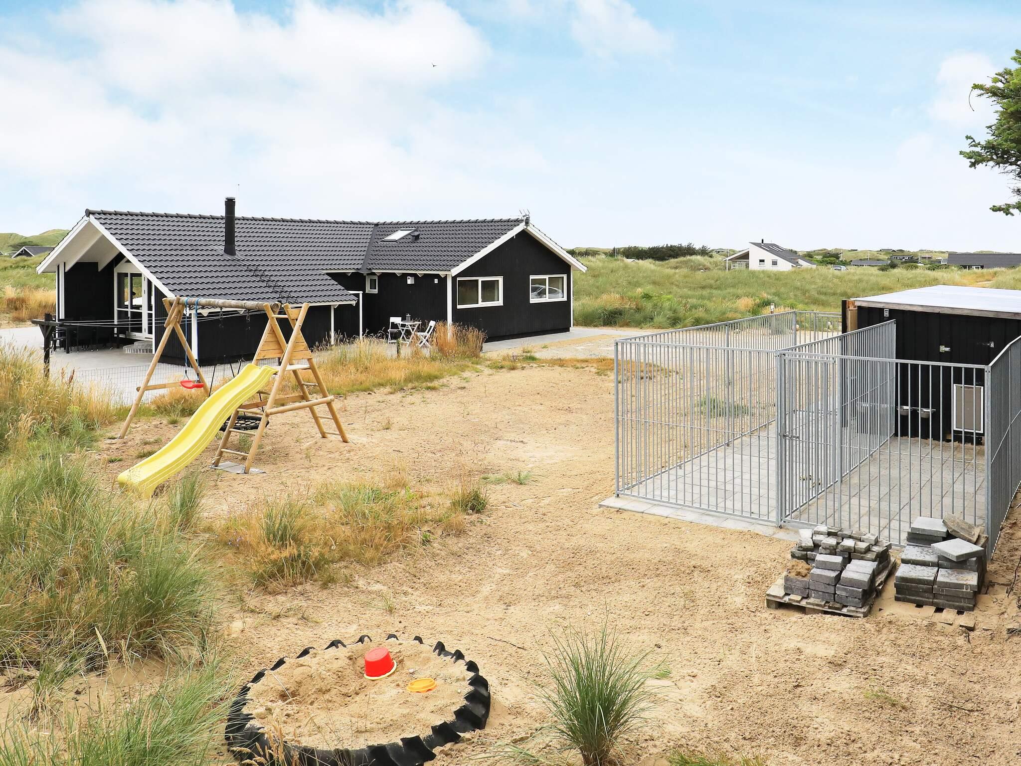 På både den overdækkede og de åbne terrasser kan I opholde jer helt ugenert, idet terrasserne grænser direkte op til klitgrunden. Til børnene er der sandkasse. Der er desuden 2 hundegårde og indhegnet terrasse.