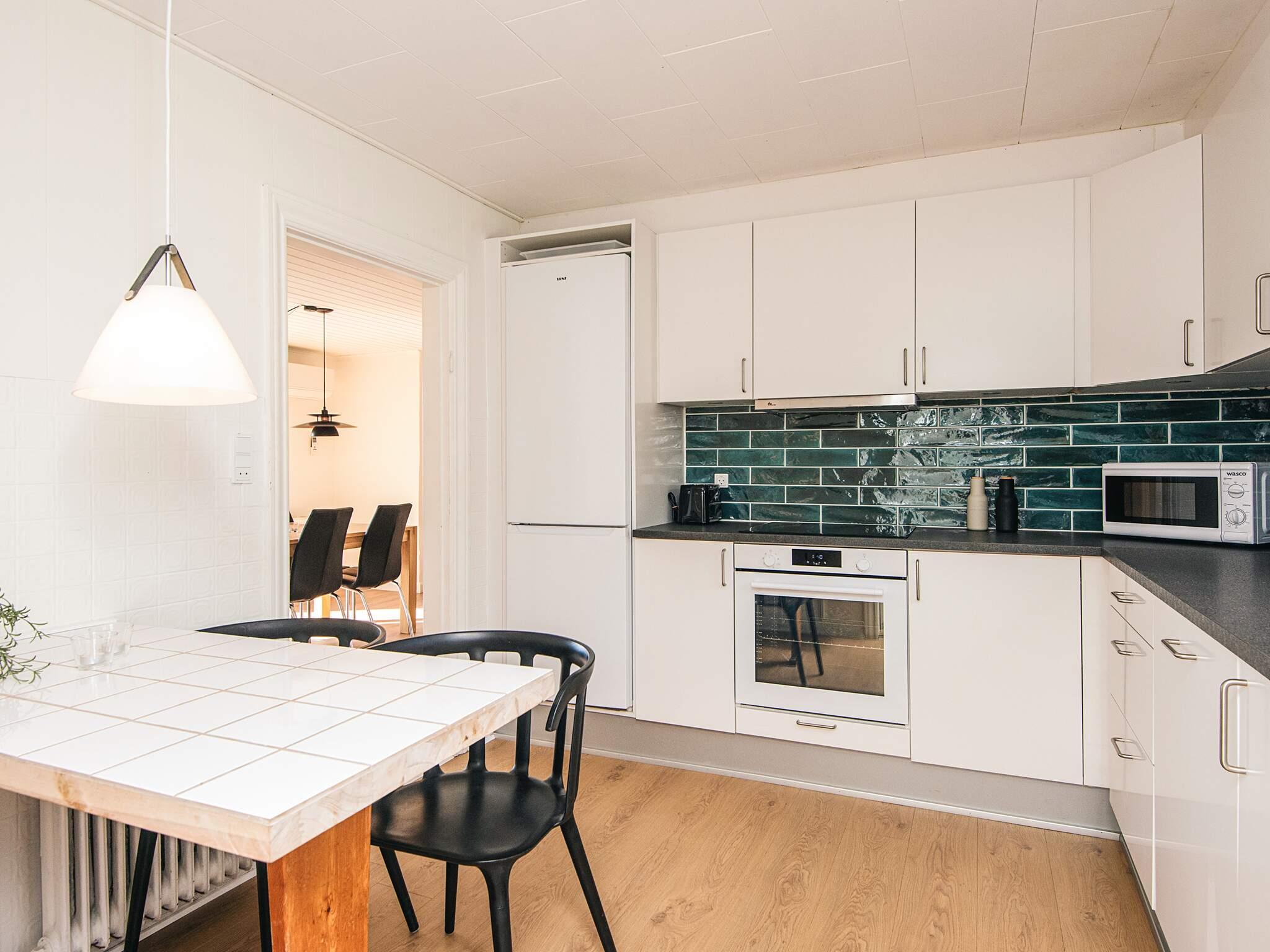 Den store spisestue har plads til op til 6 personer, så I kan nyde måltider sammen. Huset opvarmes af en luft/vand varmepumpe og har desuden et klimaanlæg, der sikrer et behageligt indeklima året rundt.