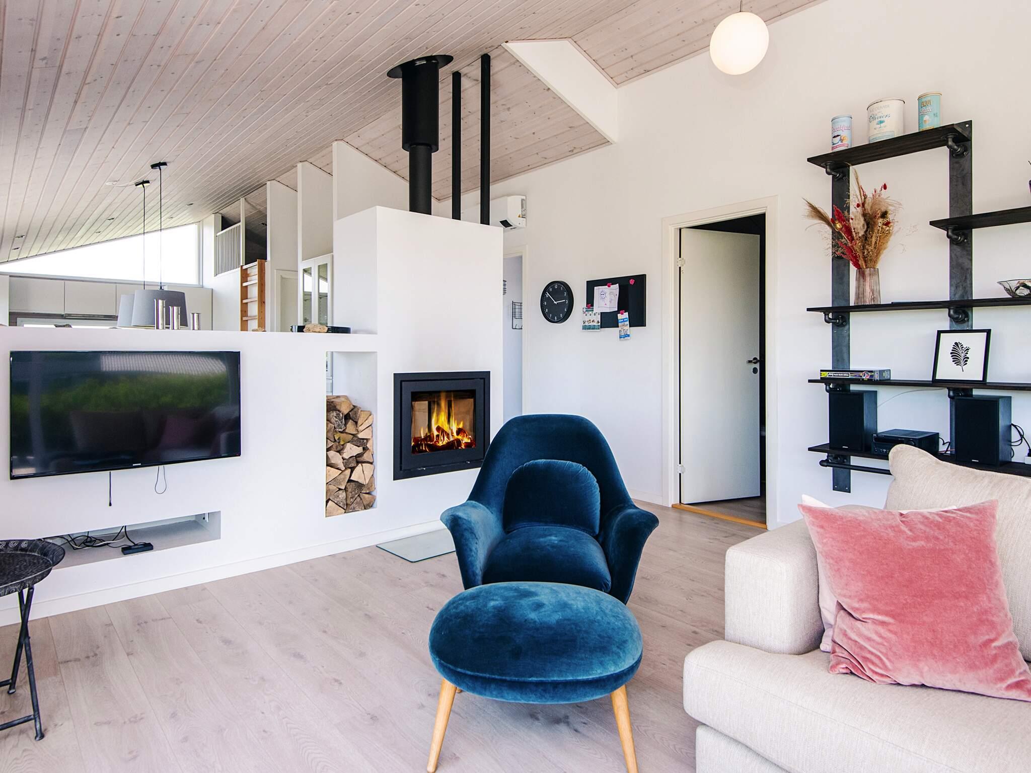 I husets hjerte finder du et rummeligt alrum med en stemningsfuld, dobbeltsidet brændeovn og en energieffektiv luft-til-luft varmepumpe, der sikrer et behageligt indeklima året rundt.