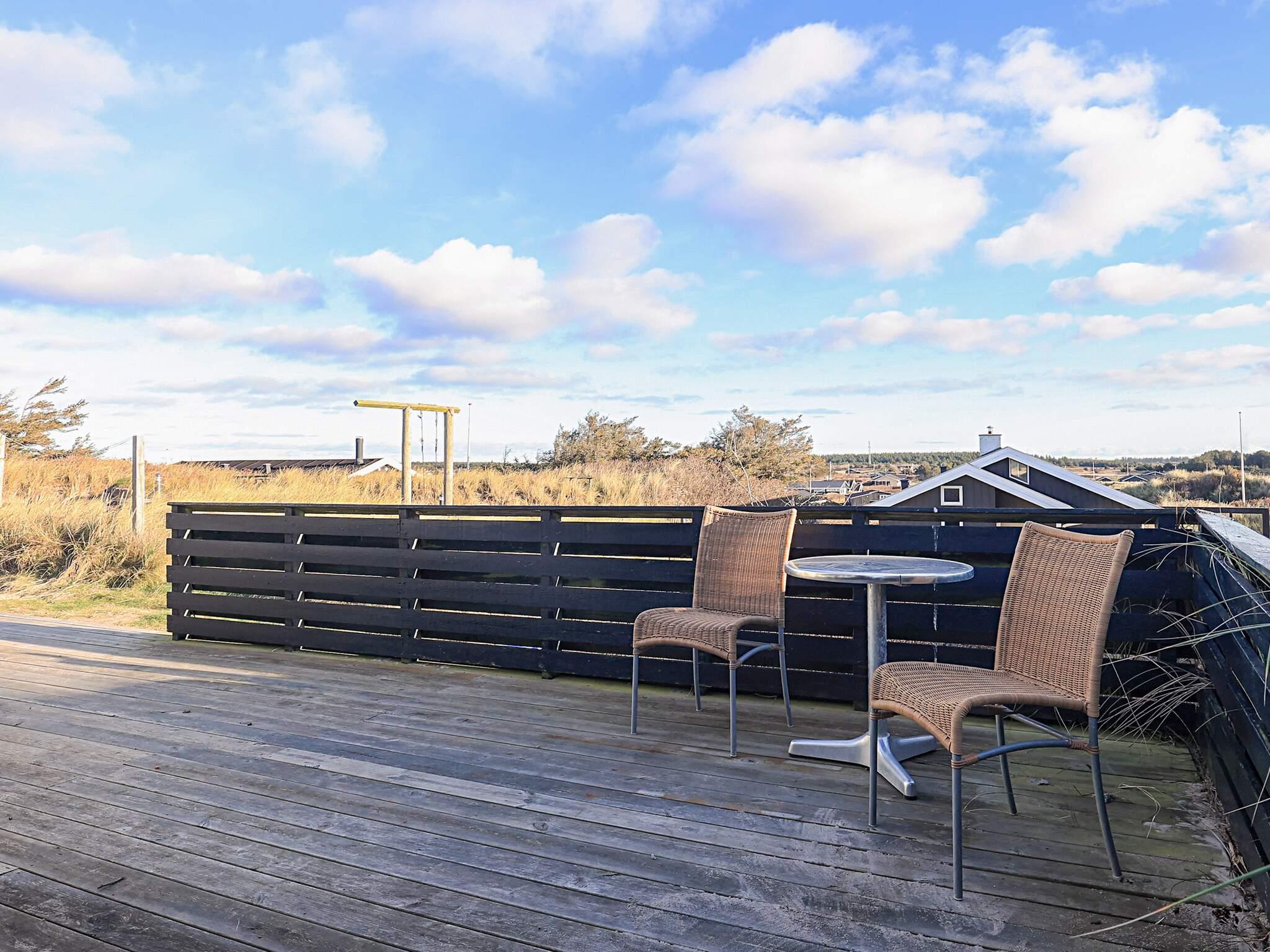 På toppen af en kuperet klitgrund finder I dette arkitekttegnet kvalitetssommerhus beliggende i klitterne 50 M fra det brusende skønne Vesterhaw med udsigt fra stue/køkken samt det 2-personers spabad som sørger for ny energi. Sommerhuset har eksklusiv indretning med smagfuld kunst såsom malerier samt udendørs skulpturer. Huset er nyrenoveret i 2020 og har bl.a. gulvvarme i bad, toilet, køkken og gang. huset er indbydende året rundt da det er udstyret med alt til en behagelig afslappet ferie, i den kølige periode er der energi fra brændeovnen samt sparende luft til luft installation. Nyd solens stråler hele dagen samt solnedgangen fra den vestlige terrasse mod det storslåede fredede klitområde. Fra køkken, stue og det ene soverum er der direkte udgang til den overdækkede terrasse hvorfra du kan nyde dine måltider og den pragtfulde morgen og eftermiddagssol. Den østlige terrasse er delvis overdækket så man kan nyde sine måltider i læ for vejret. Som en selvfølge er der havegrill og hængekøje og havemøbler. Desuden sandkasse og gynge til de mindste.