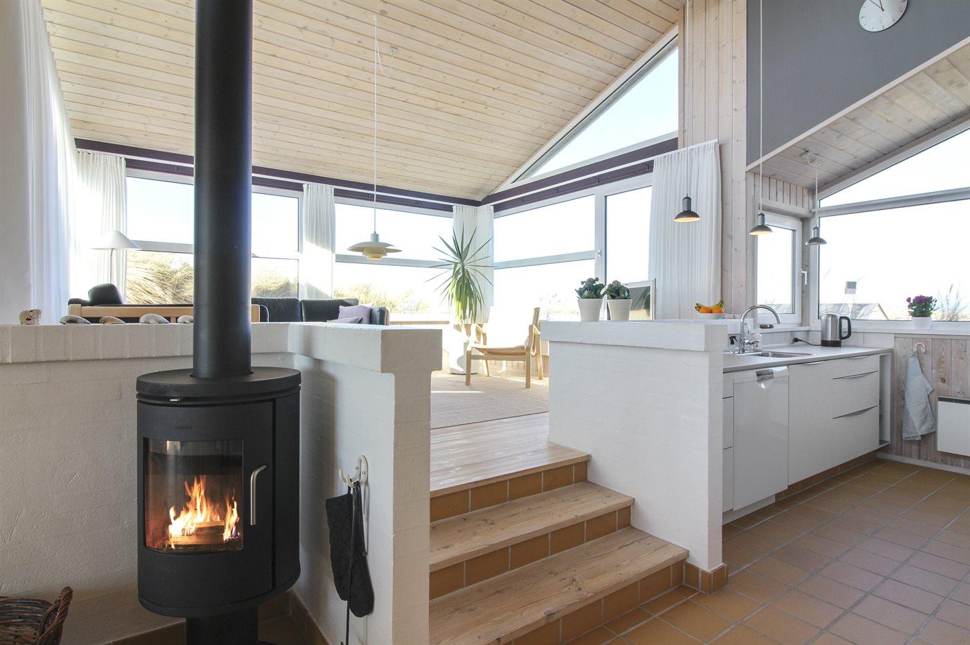 Skønt og velholdt sommerhus beliggende i de skønne klitter med udsigt til klitter og hav. Huset har en stor overdækket terrasse med en bred terrassedør, hvor terrassen og udelivet kan lukkes ind i spisestuen. Huset er særdeles velegnet til familien med et par børn eller et par, som bare kommer for at nyde roen. Der er til sæsonen 2022 nyt køkken i huset.