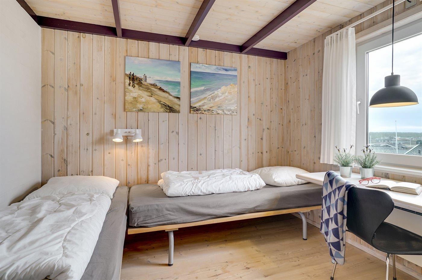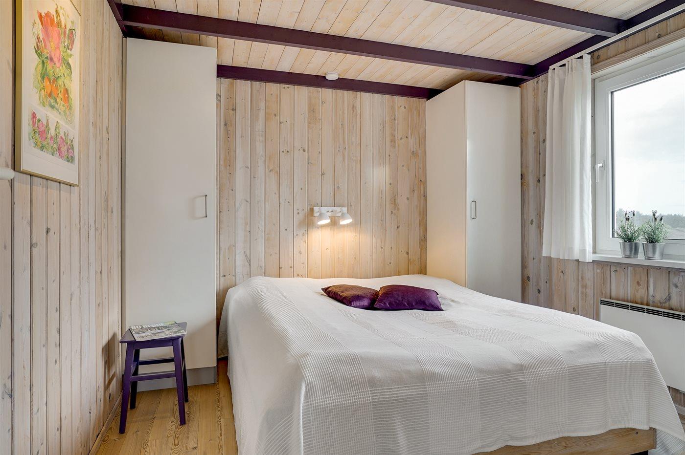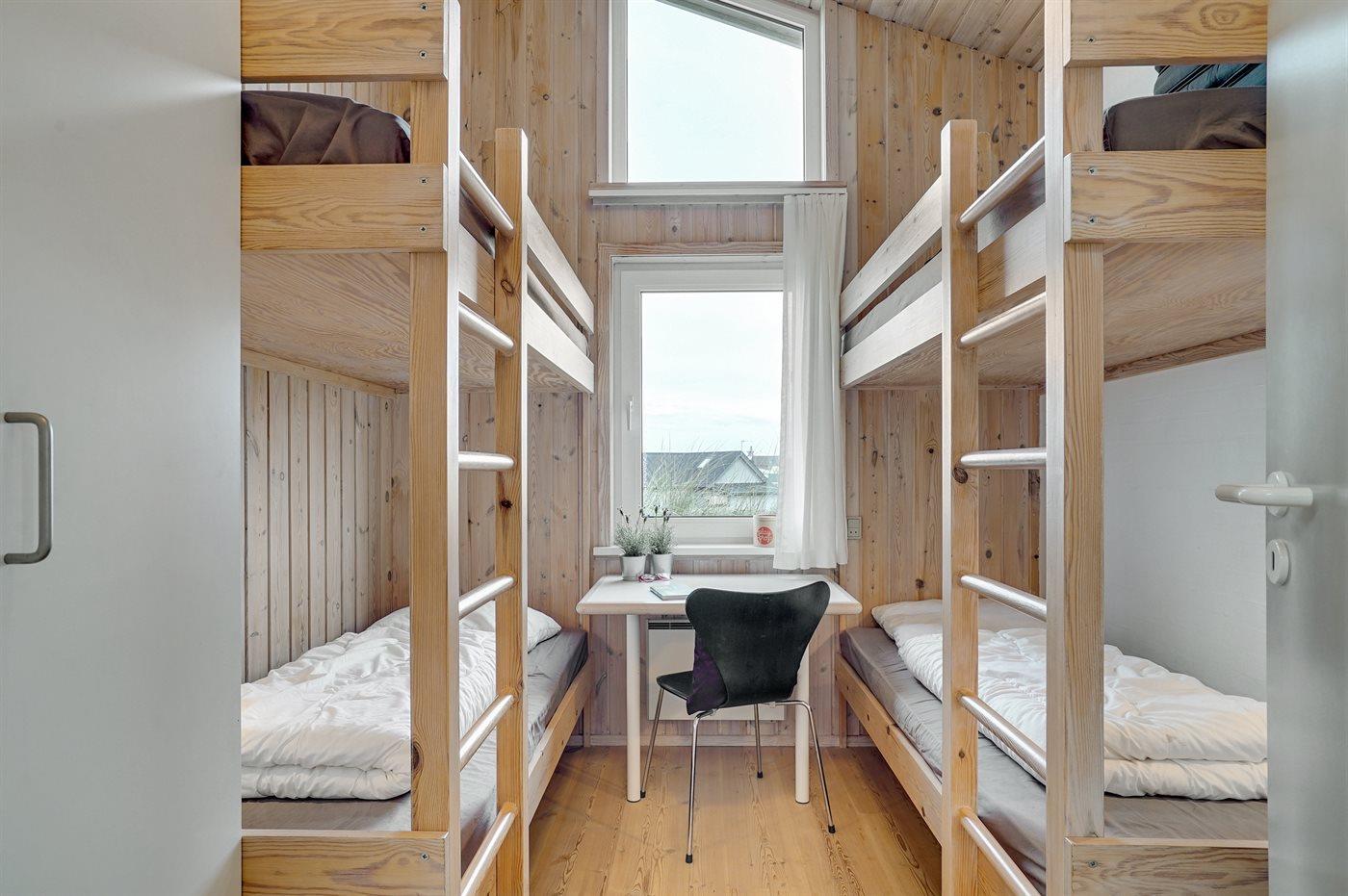 Der er i alt 3 soveværelser. Sovepladserne fordeler sig på: 2 sovepladser i dobbeltseng. 2 sovepladser i enkeltsenge. 2 sovepladser i køjeseng. Derudover er der 1 stk. barneseng.