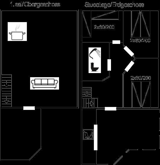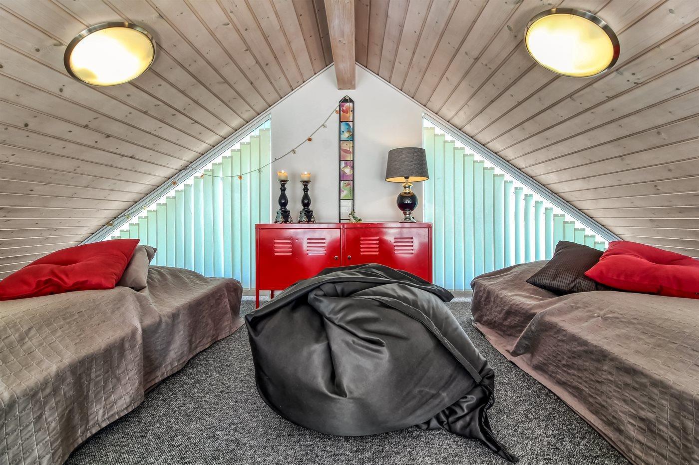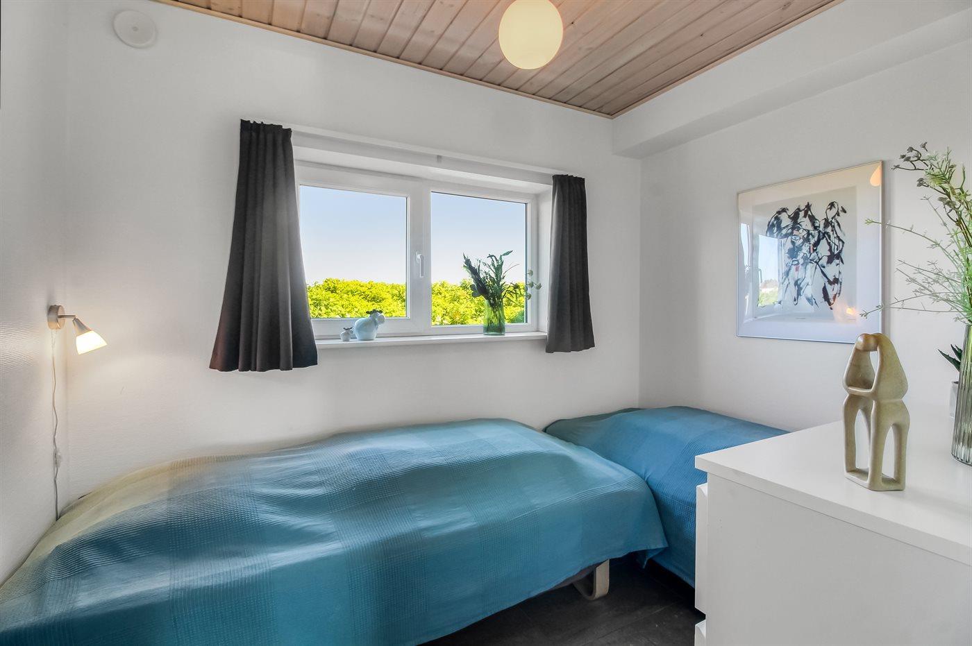 Der er i alt 3 soveværelser. Sovepladserne fordeler sig på: 4 sovepladser i dobbeltsenge. 2 sovepladser i enkeltsenge. 2 sovepladser på madrasser. 2 af disse sovepladser befinder sig på husets hems. Derudover er der 1 stk. barneseng.
