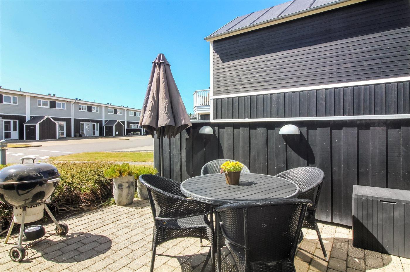 Ferieboligen er beliggende på en 120 m² stor naturgrund. Der er 700 m til havet. Nærmeste forretning er beliggende i en afstand af 700 m. Der er en golfbane i en afstand af 100 m. Til ferieboligen hører 11 m² terrasseareal. Desuden er der 11 m² overdækket terrasse. Udgang til altan. Gynge. Sandkasse. Parkering ved ferieboligen.