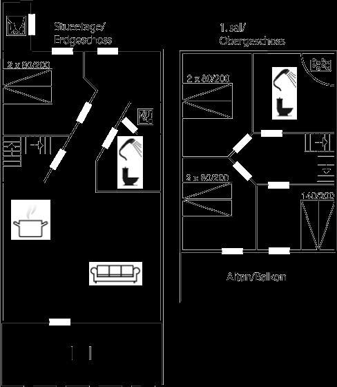 Husets sovepladser fordeler sig på 2 værelser med dobbeltseng og 1 værelse med 3/4 seng (120 cm) på første sal samt 1 værelse med dobbeltseng i stueetagen.
