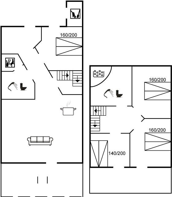 Der er i alt 4 soveværelser. Sovepladserne fordeler sig på: 8 sovepladser i dobbeltsenge. Derudover er der 1 stk. barneseng.