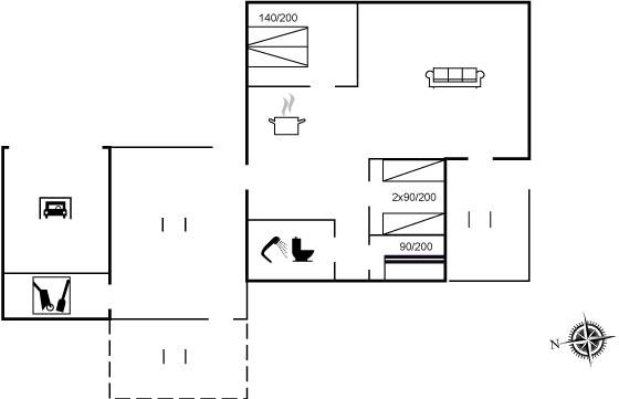Der er i alt 3 soveværelser. Sovepladserne fordeler sig på: 2 sovepladser i dobbeltseng. 2 sovepladser i enkeltsenge. 2 sovepladser i køjeseng.