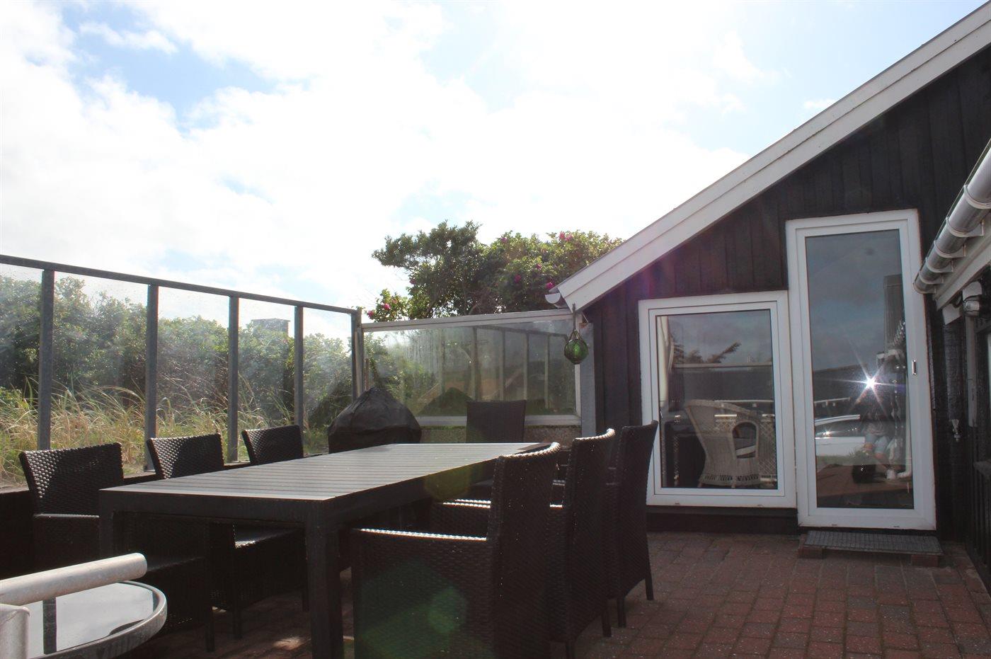 Dejligt sommerhus, bygget i flere forskellige niveauer, beliggende på en mindre klitgrund, kun 50 fra vandet. Flot havudsigt fra stuen og terrassen. Huset har dejlig åben terrasse, der ligger i læ af klitterne. Huset er indrettet i ejernes personlige stil og oser af hygge.