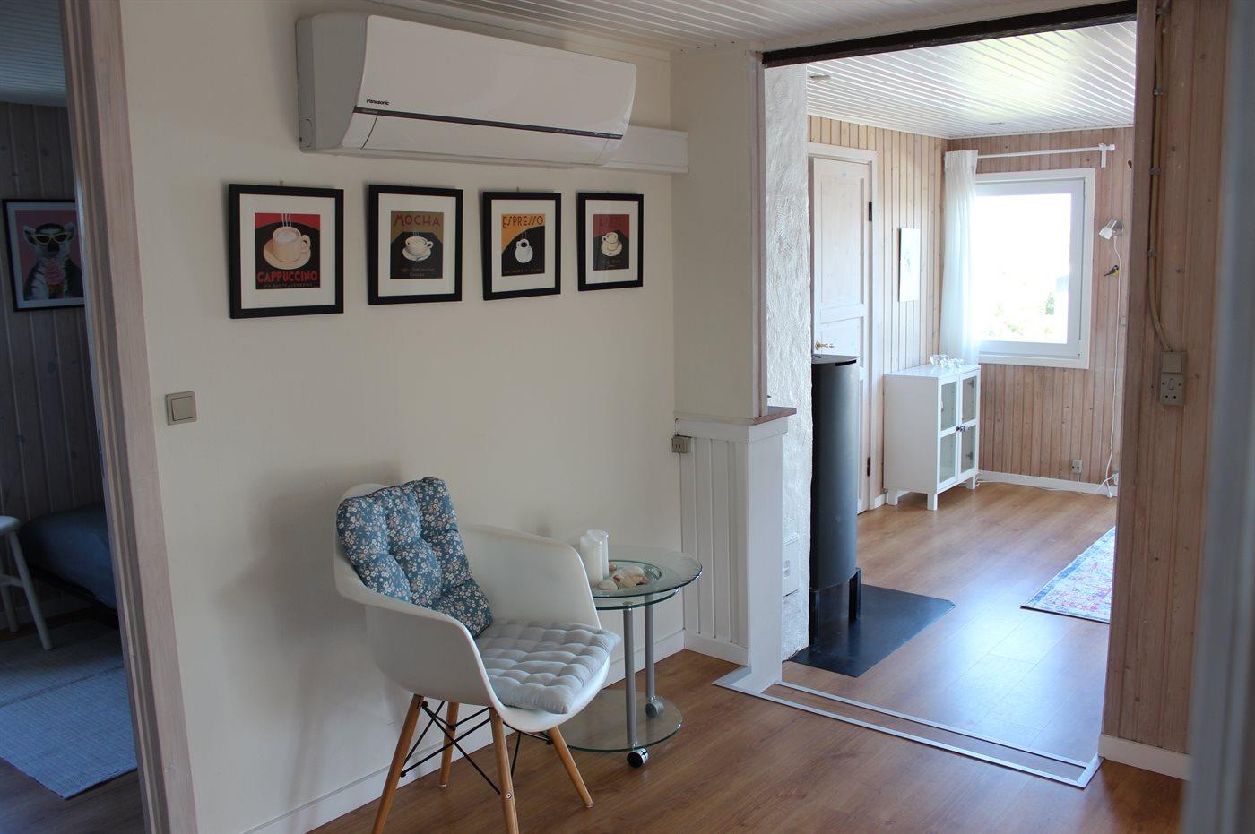 Der er i alt 3 soveværelser. Sovepladserne fordeler sig på: 4 sovepladser i dobbeltsenge. 1 soveplads i sovesofa (enkelt). Derudover er der 1 stk. barneseng.